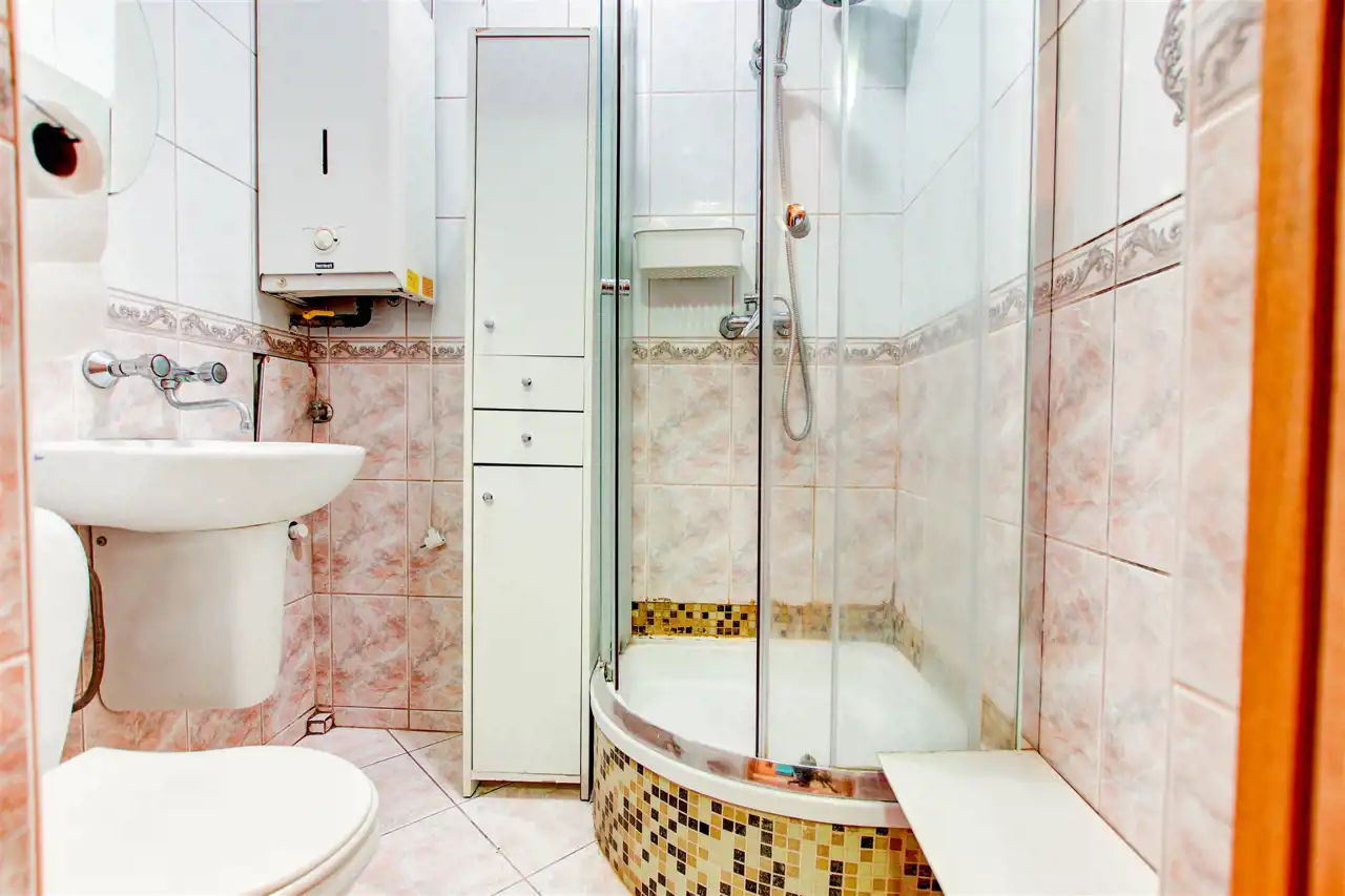 - Media Ogrzewanie: C.O. miejskie; Woda: ciepła - piecyk gazowy; Gaz: jest