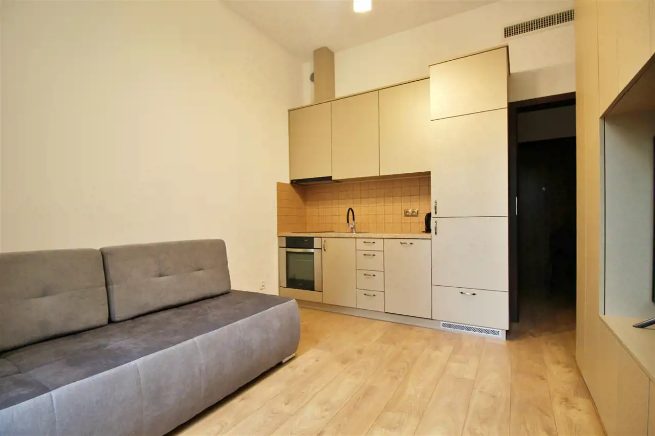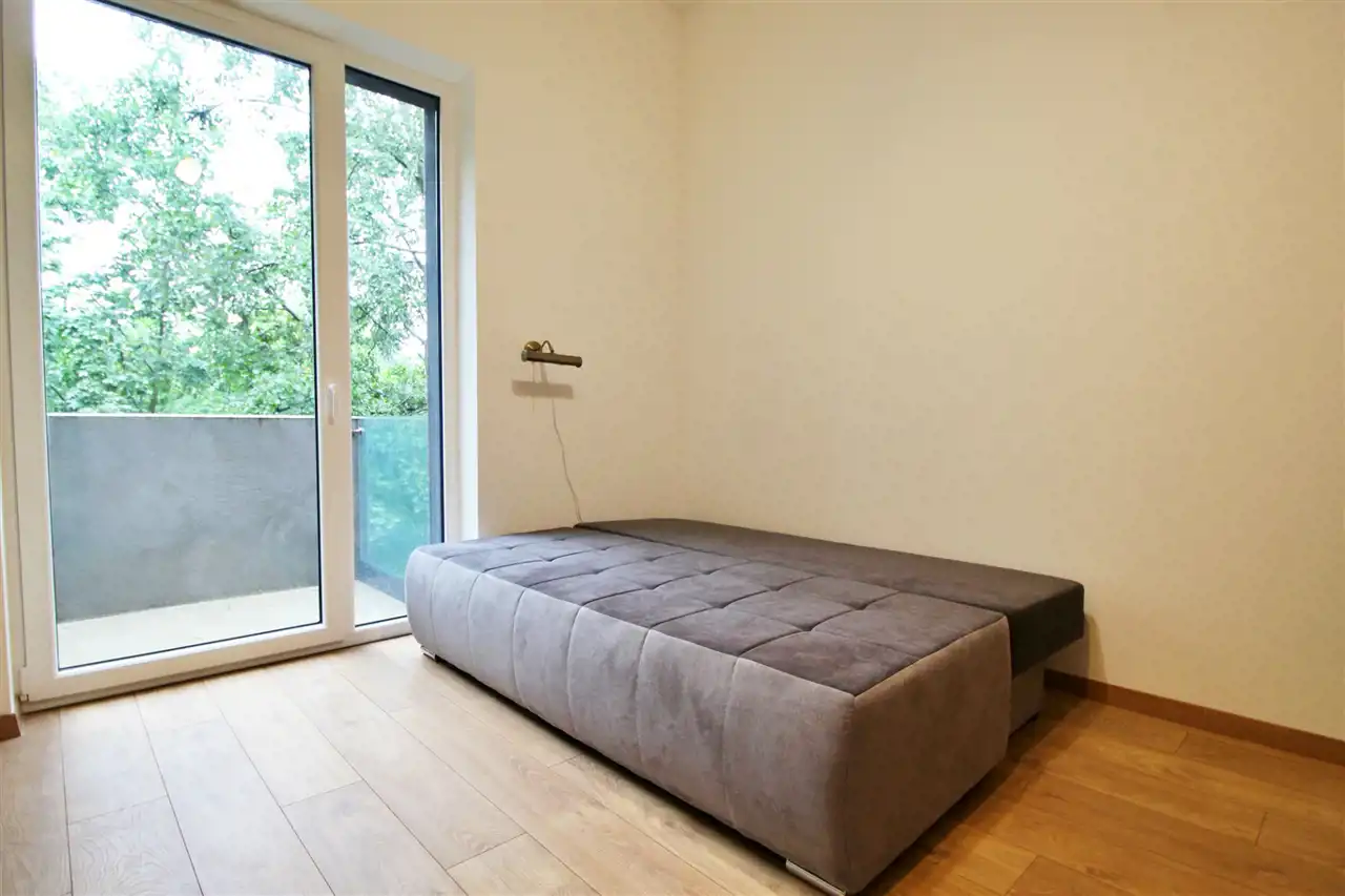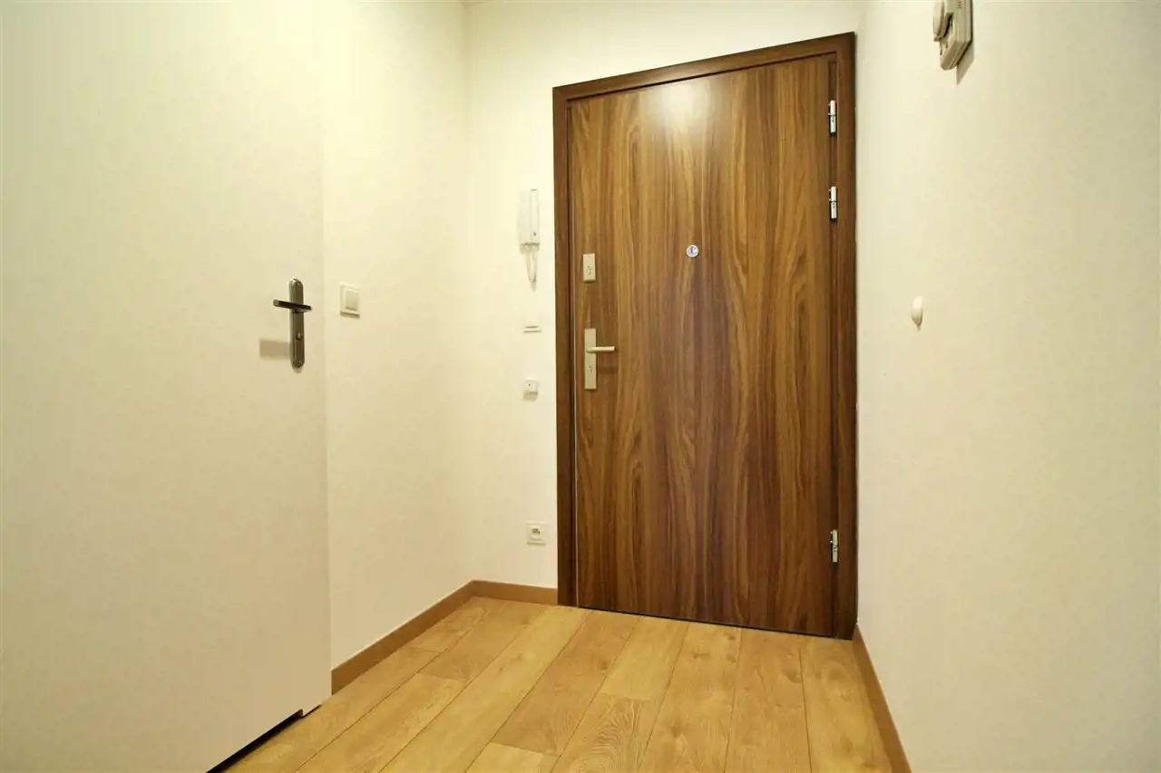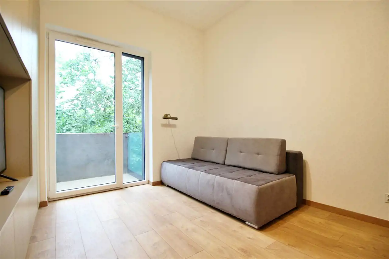 Mieszkanie znajduje się na 2. piętrze budynku w nowej inwestycji XS Apartments i składa się z pokoju z aneksem kuchennym, łazienki, przedpokoju oraz balkonu. Mieszkanie jest całkowicie wyposażone w sprzęt AGD i RTV, a także ma wbudowaną klimatyzację. W pokoju znajdują się pojemne szafy w zabudowie i rozkładana kanapa. Dodatkowo dokupiony został stolik kawowy oraz składany stół w aneksie. W łazience nie ma pralki, ale w budynku znajduje się ogólnodostępna pralnia, której koszt zawiera się w czynszu (wystarczy mieć swoje środki piorące).
