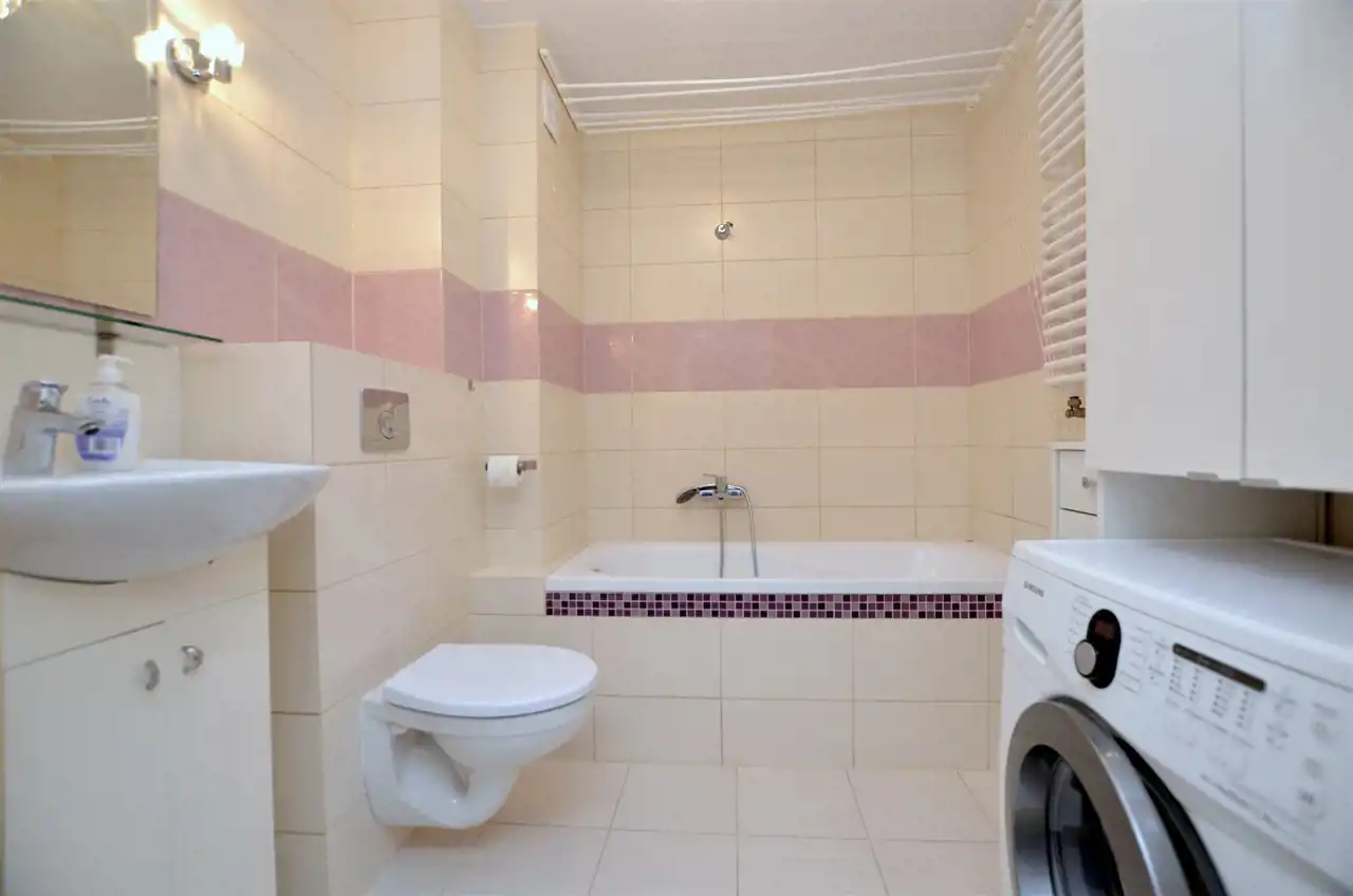 Miesięczny czynsz najmu wynosi 2100,00 zł. Do tego należy doliczyć miesięczny czynsz administracyjny w kwocie ok. 500,00 zł, w którym znajdują się już praktycznie wszystkie opłaty związane z utrzymaniem mieszkania takie jak: zaliczki na ogrzewanie, zaliczki na wodę zimną i ciepłą wynagrodzenie zarządcy, fundusz remontowy, utrzymanie części wspólnych itp. Dodatkowo płacimy już tylko prąd zaliczkowo 150,00 zł miesięcznie.