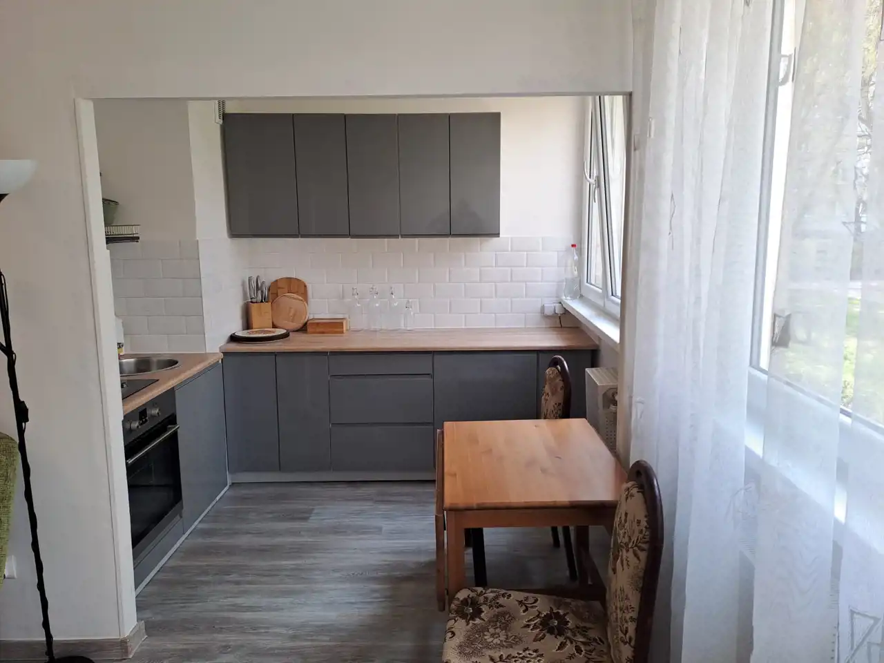 Mieszkanie jest po kosmetycznym remoncie, ciche i jasne.