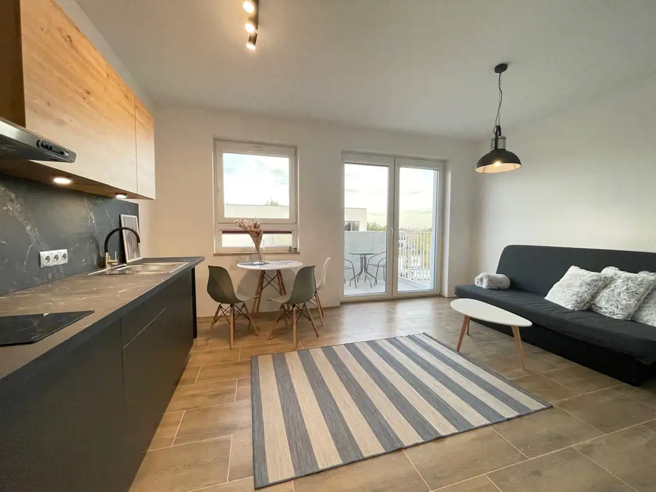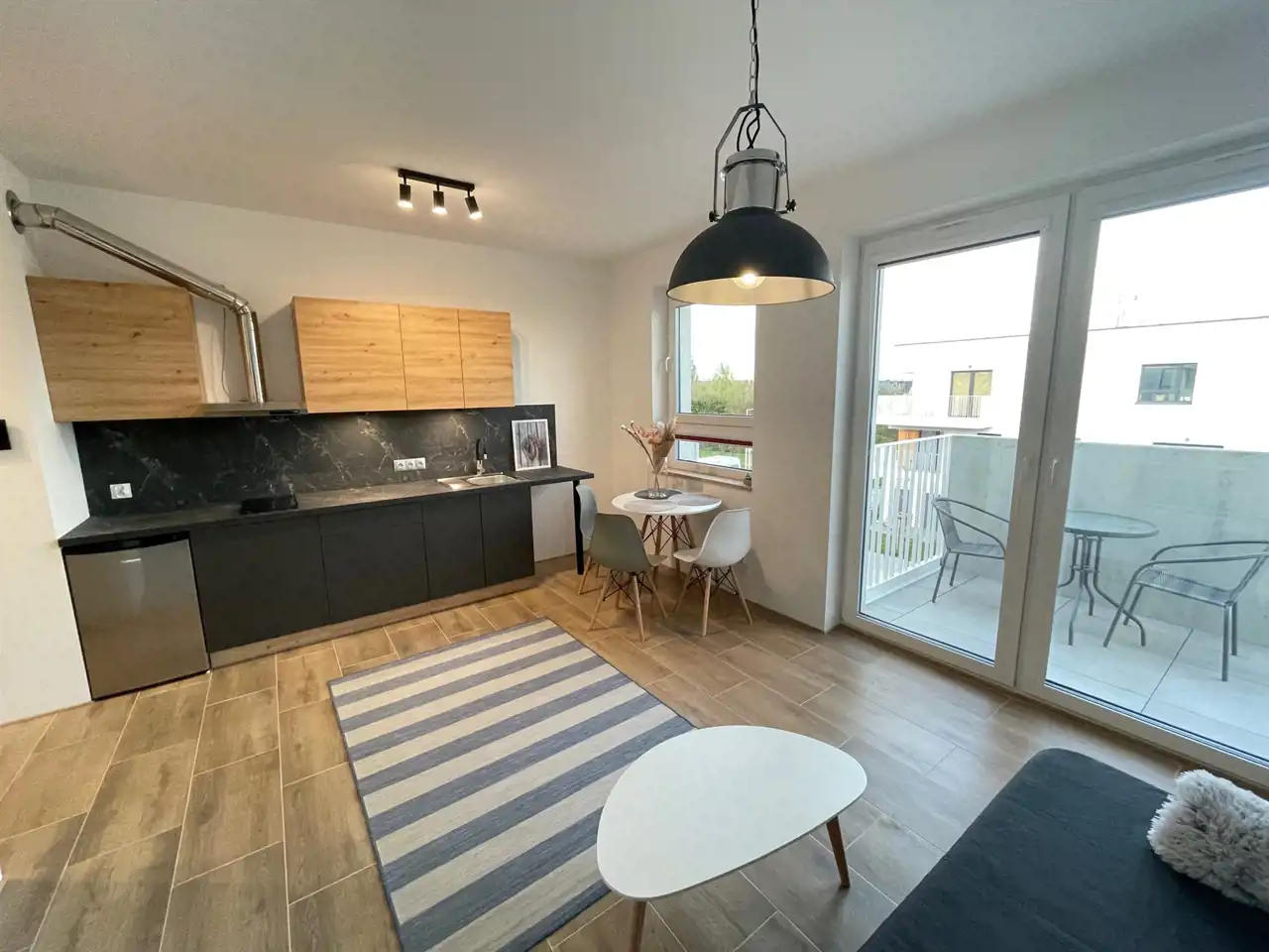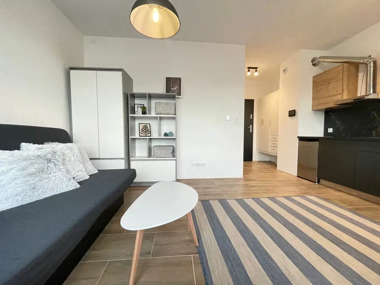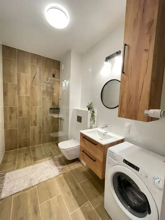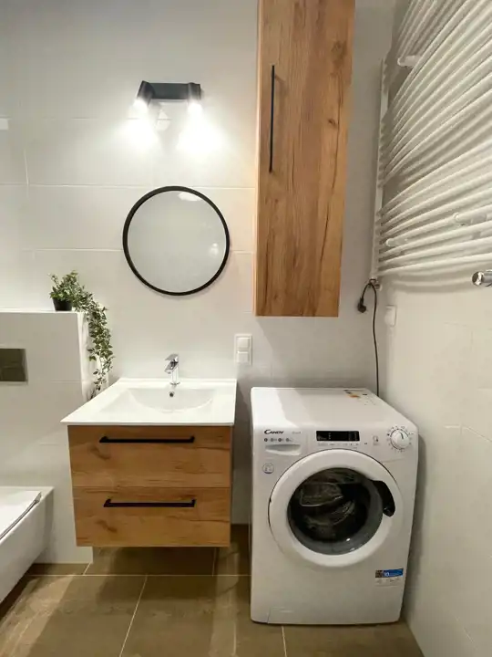 Lokal kompletnie umeblowany, z dużą szafą w przedpokoju, wyposażony w ogrzewanie podłogowe.
