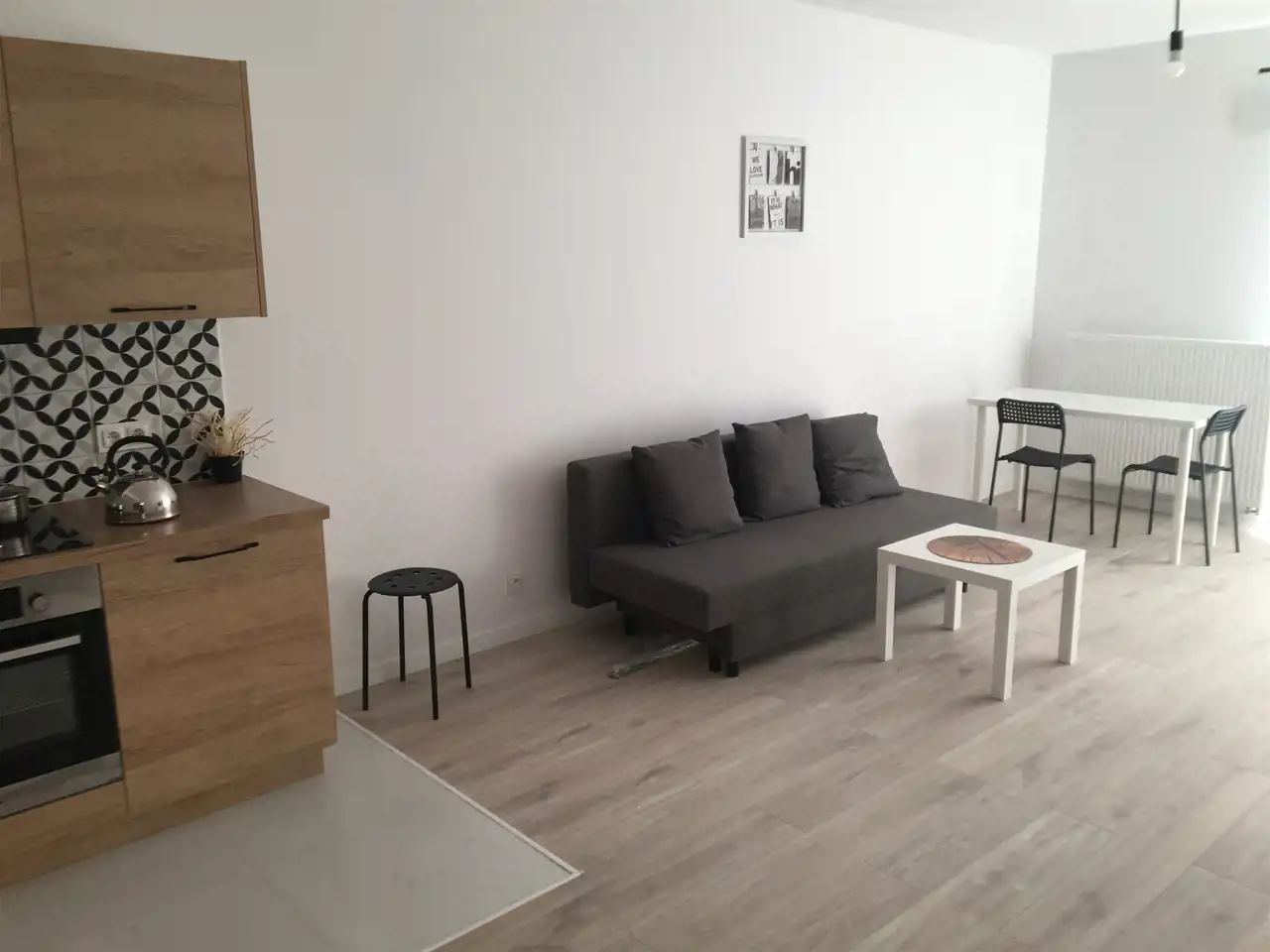 Lokal o powierzchni 37 m² jest w pełni umeblowany i gotowy do zamieszkania.