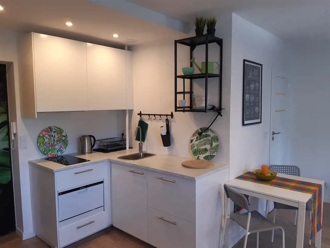 Aneks kuchenny z 2 palnikową płytą indukcyjną, mini zmywarką i lodówką. Nowa zabudowa na wymiar.