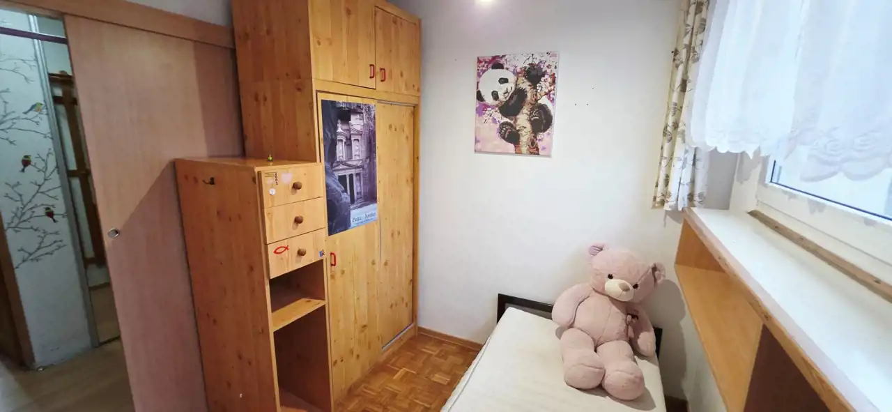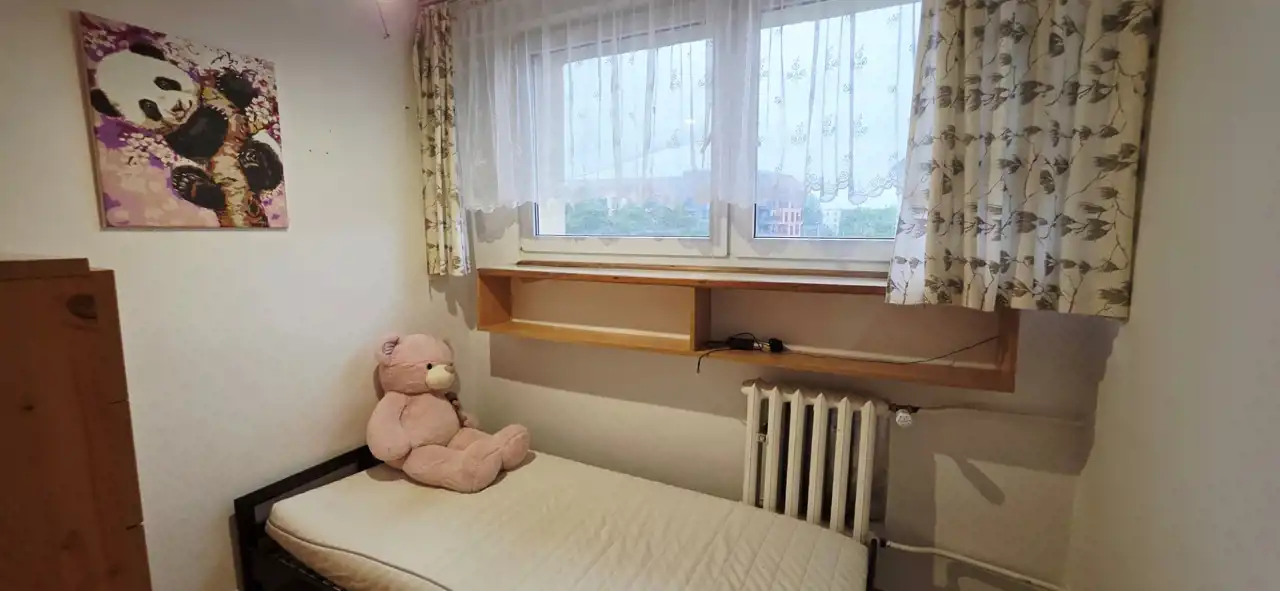 Trzy w pełni rozkładowe pokoje - jasne i słoneczne. Każdy umeblowany.
