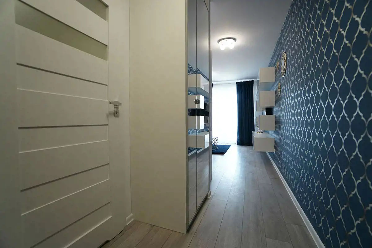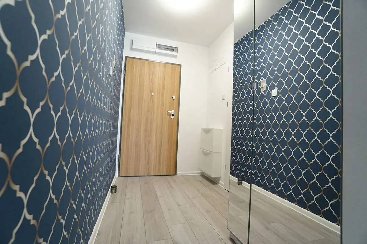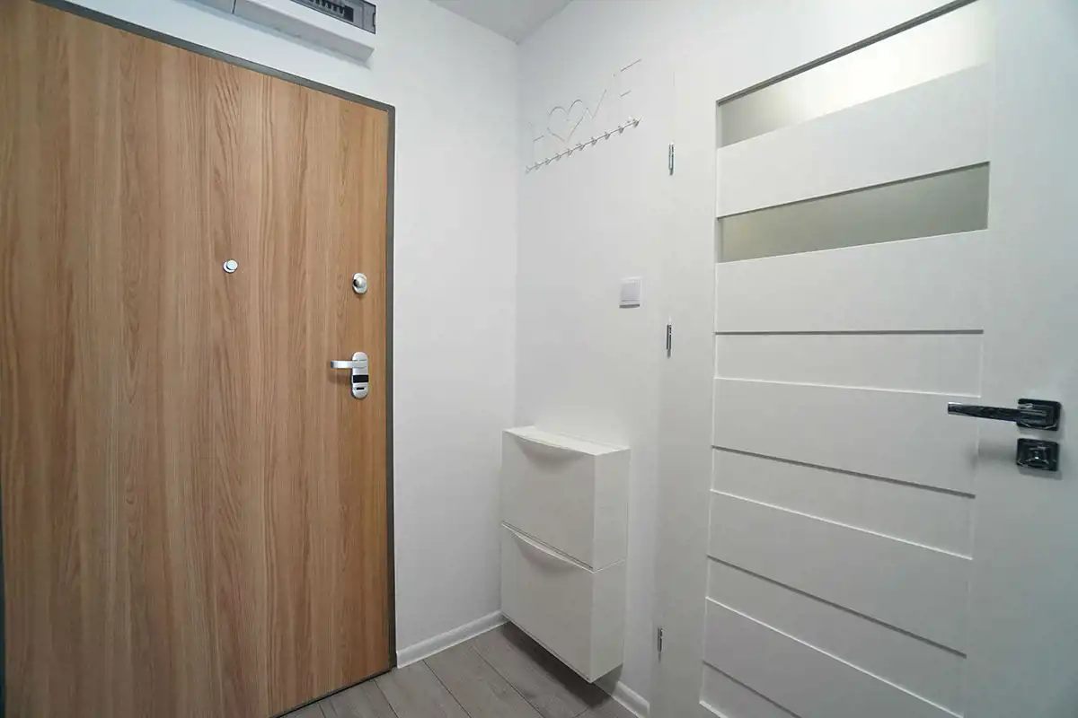 Na przedpokoju: pojemna szafa oraz szafka na buty.