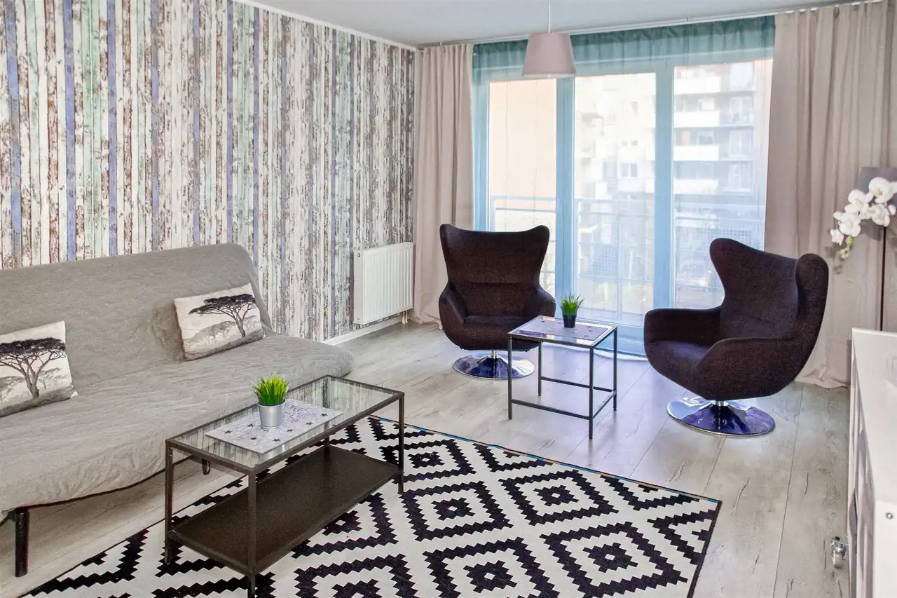 - 2 pokoje. W salonie jedna z kanap została wymieniona na wygodne krzesła.