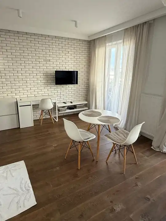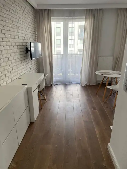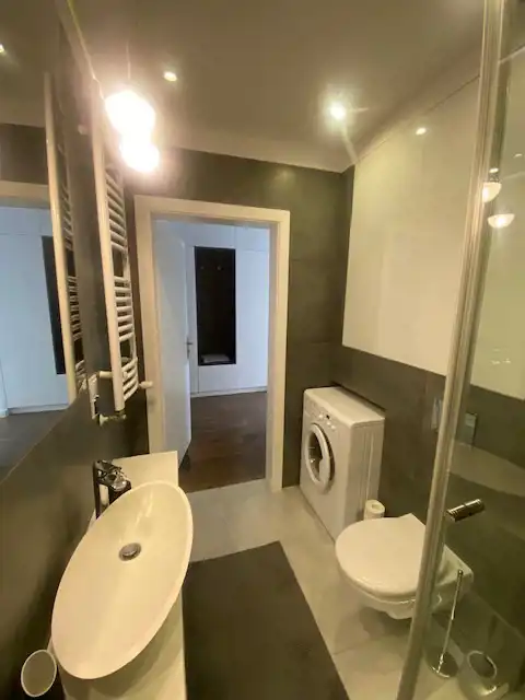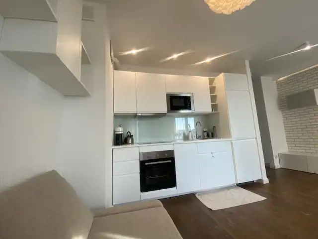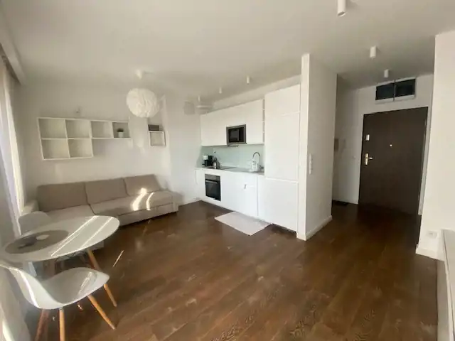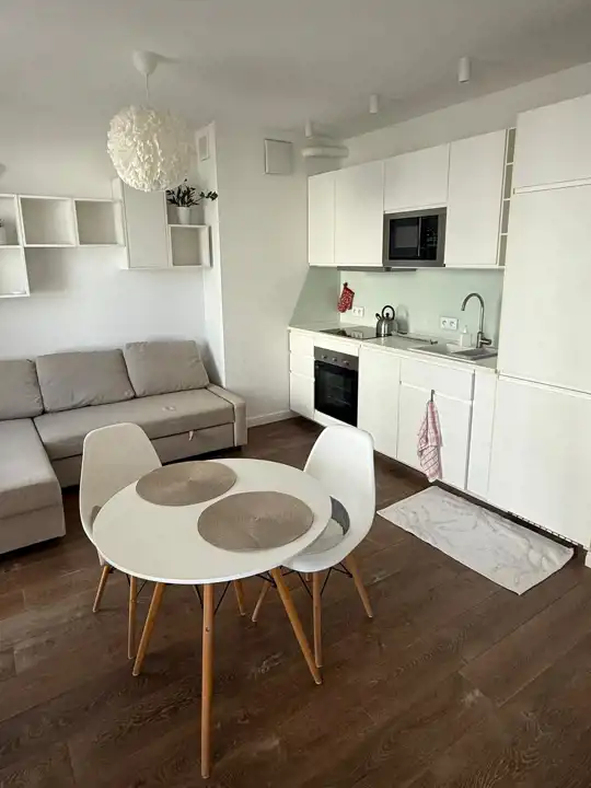 Property: New, modern studio apartment on a estate 3 km from the Main Square. Whole space comprises: living room, kitchen, bathroom, hallway and balcony. Apartment newly decorated, completly furnished. Kitchen with all appliances: induction hob, oven, extractor hood, fridge, dish washer. City heating. Secured estate with the nice courtyard, shops and commercial units in the ground floor, so everything is nearby. Invite you for the presentation.