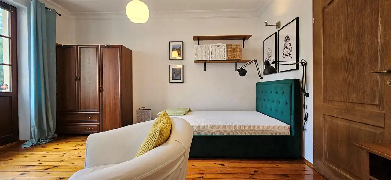 - mieszkanie zlokalizowane na I piętrze w odrestaurowanej, kameralnej i spokojnej kamienicy;