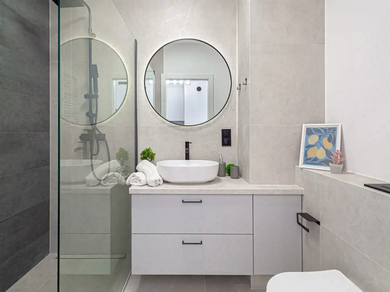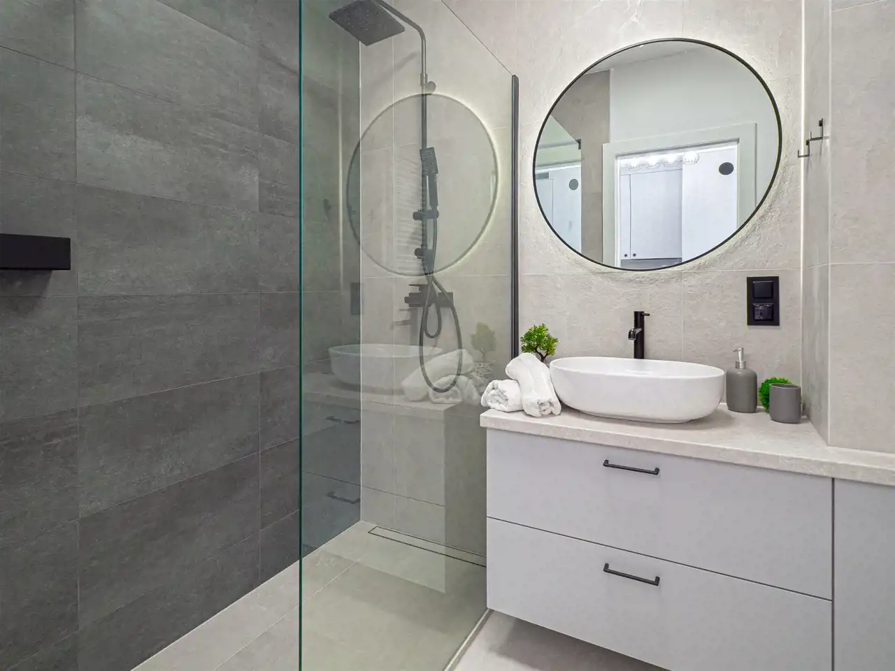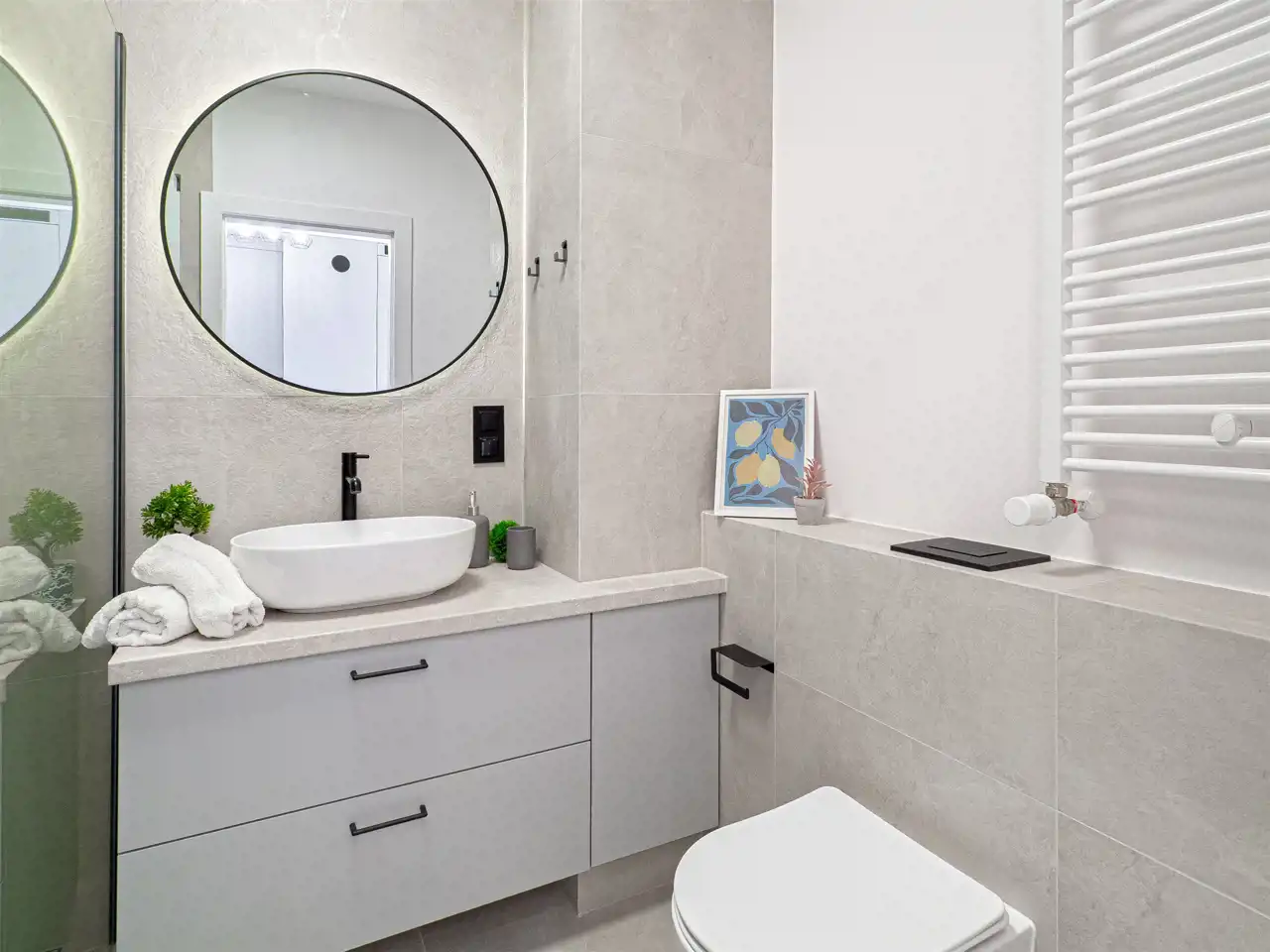 - nowocześnie wykończonej łazienki z prysznicem.