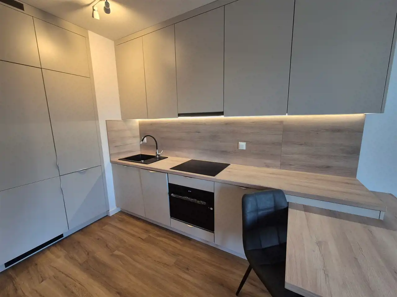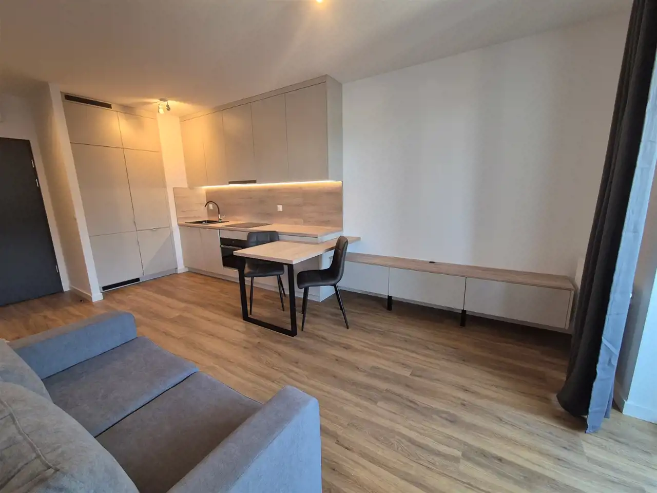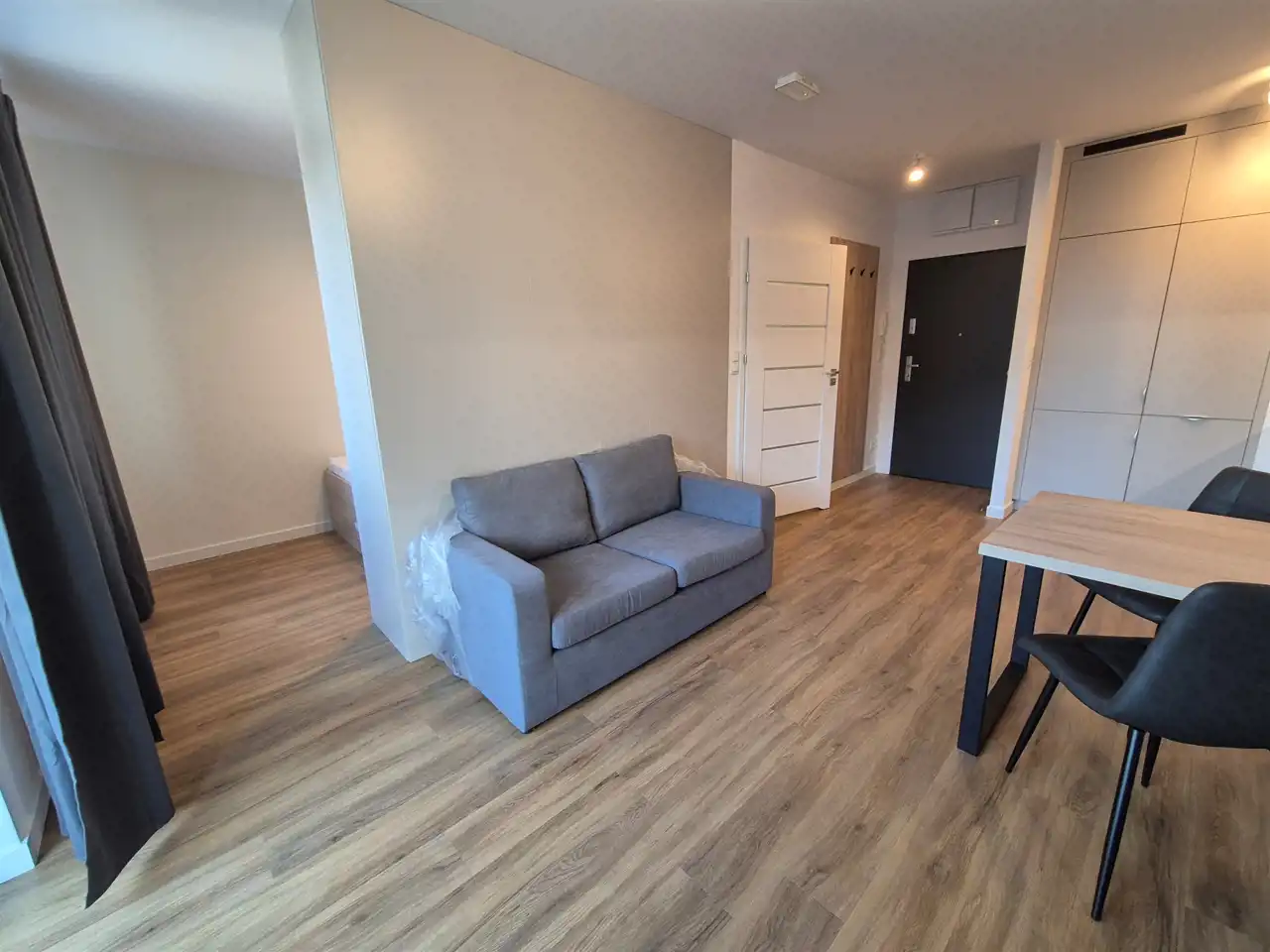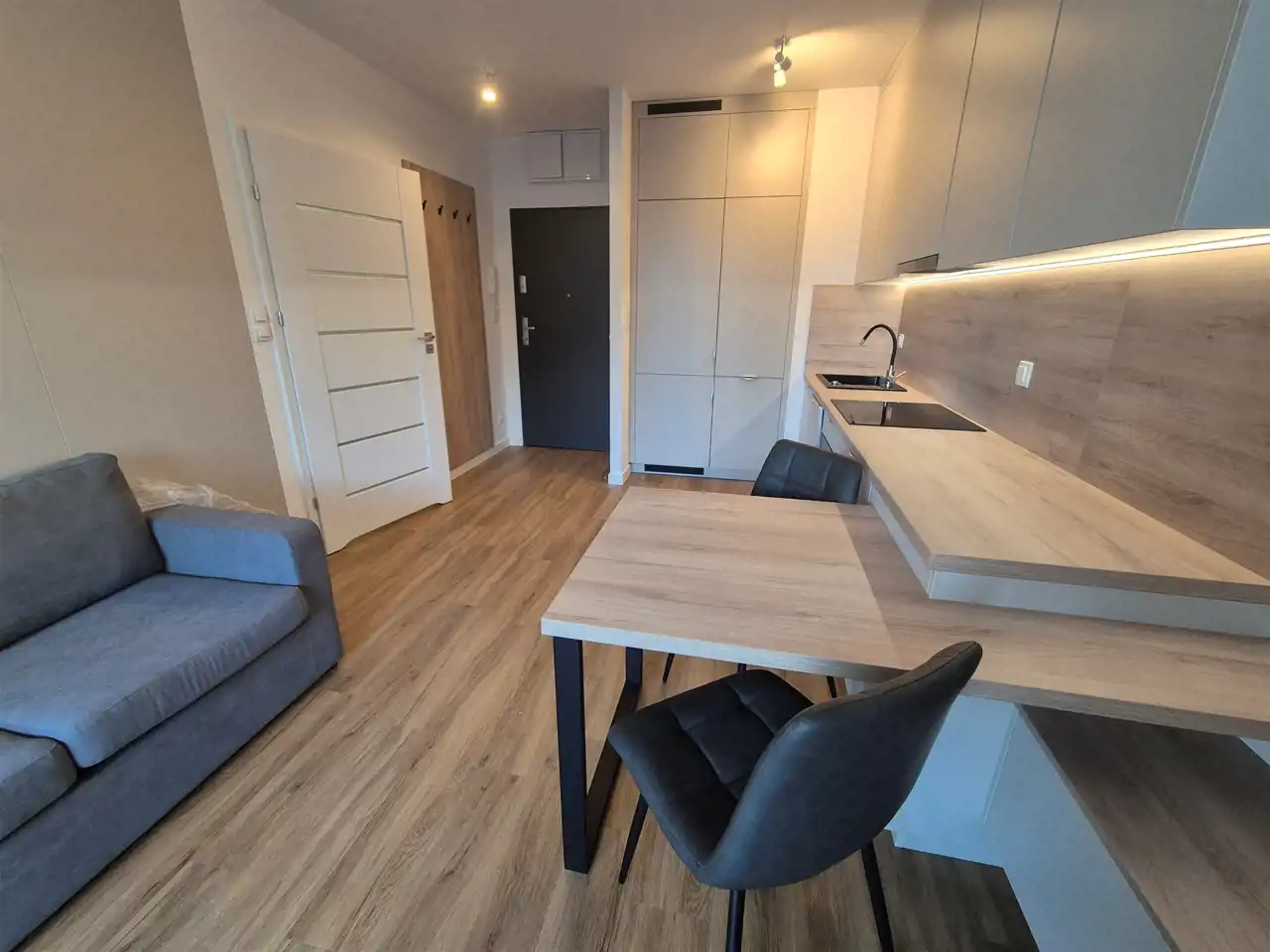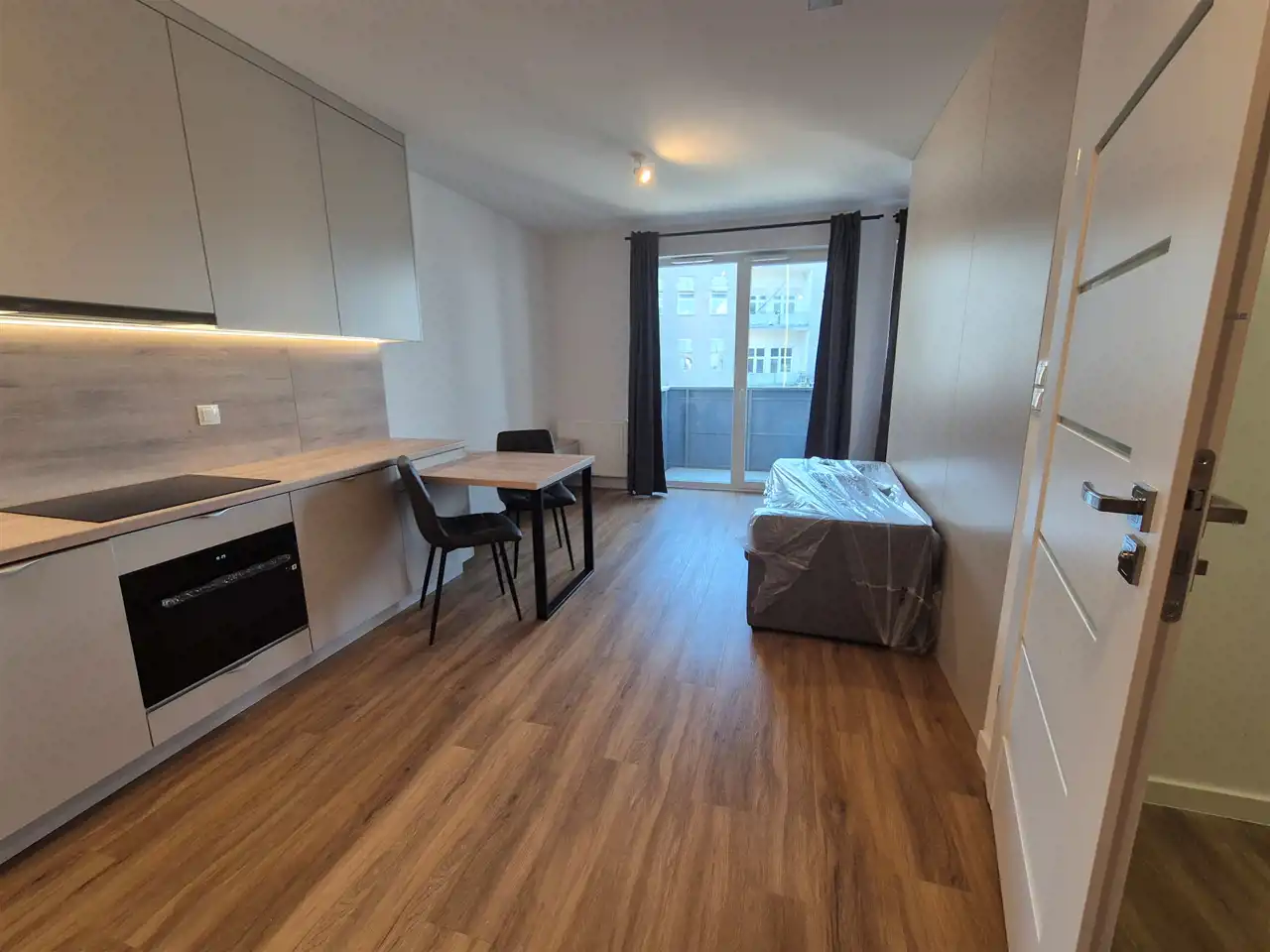 Duża kawalerka o pow. ok. 33,00 m2, pokój połączony z aneksem kuchennym z wyjściem na balkon i wydzieloną sypialnią.
