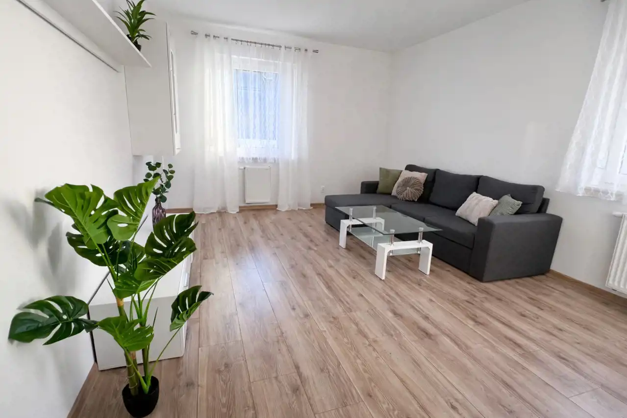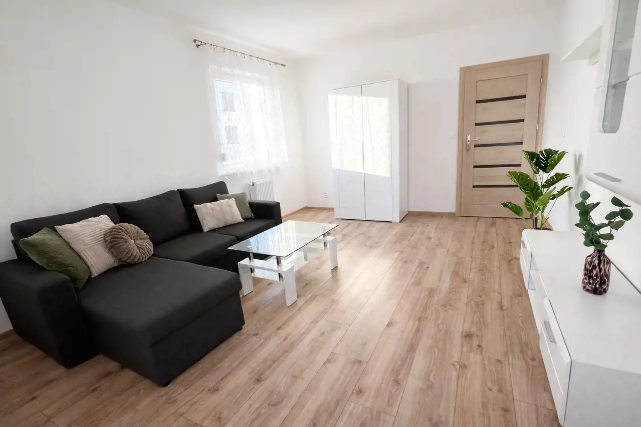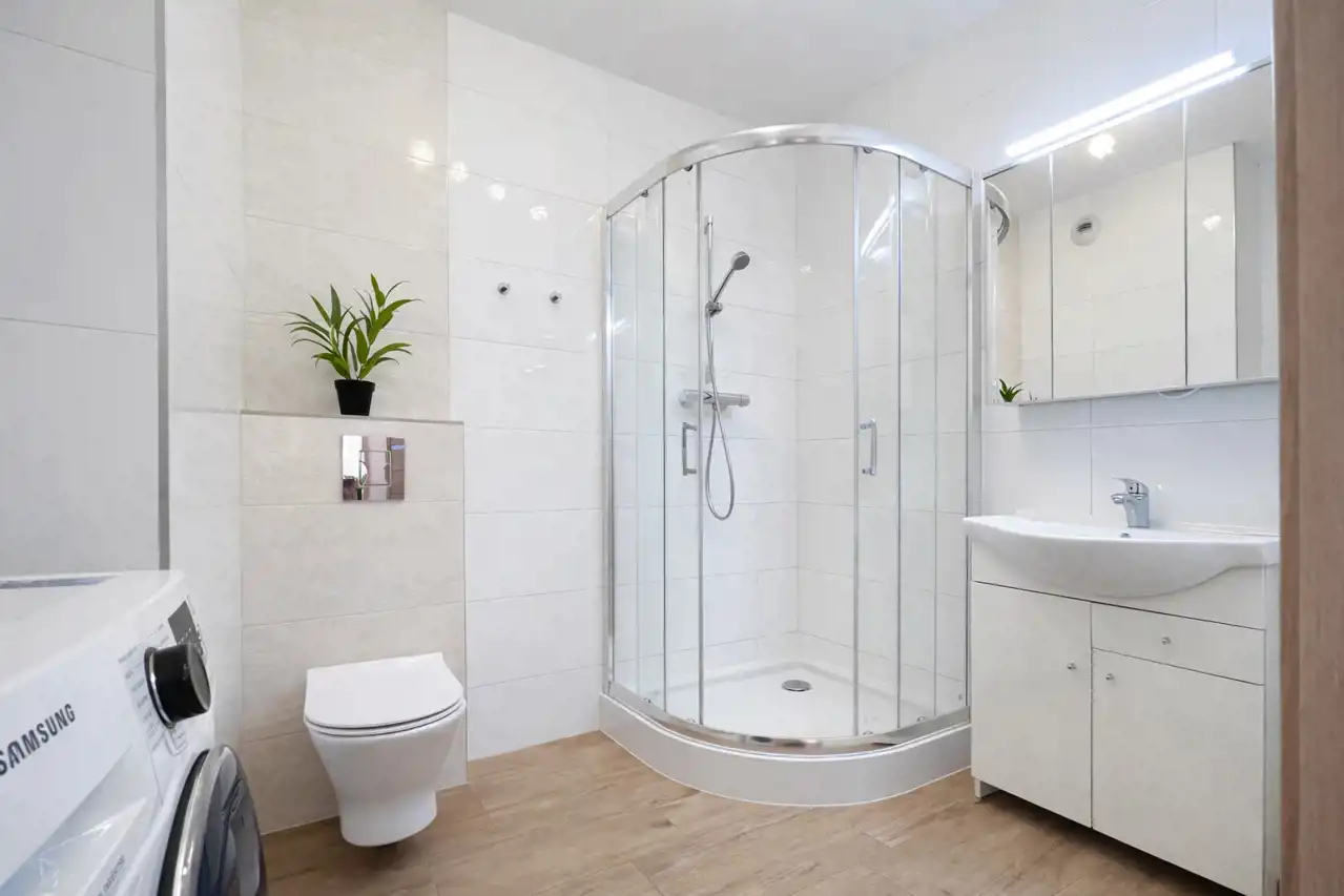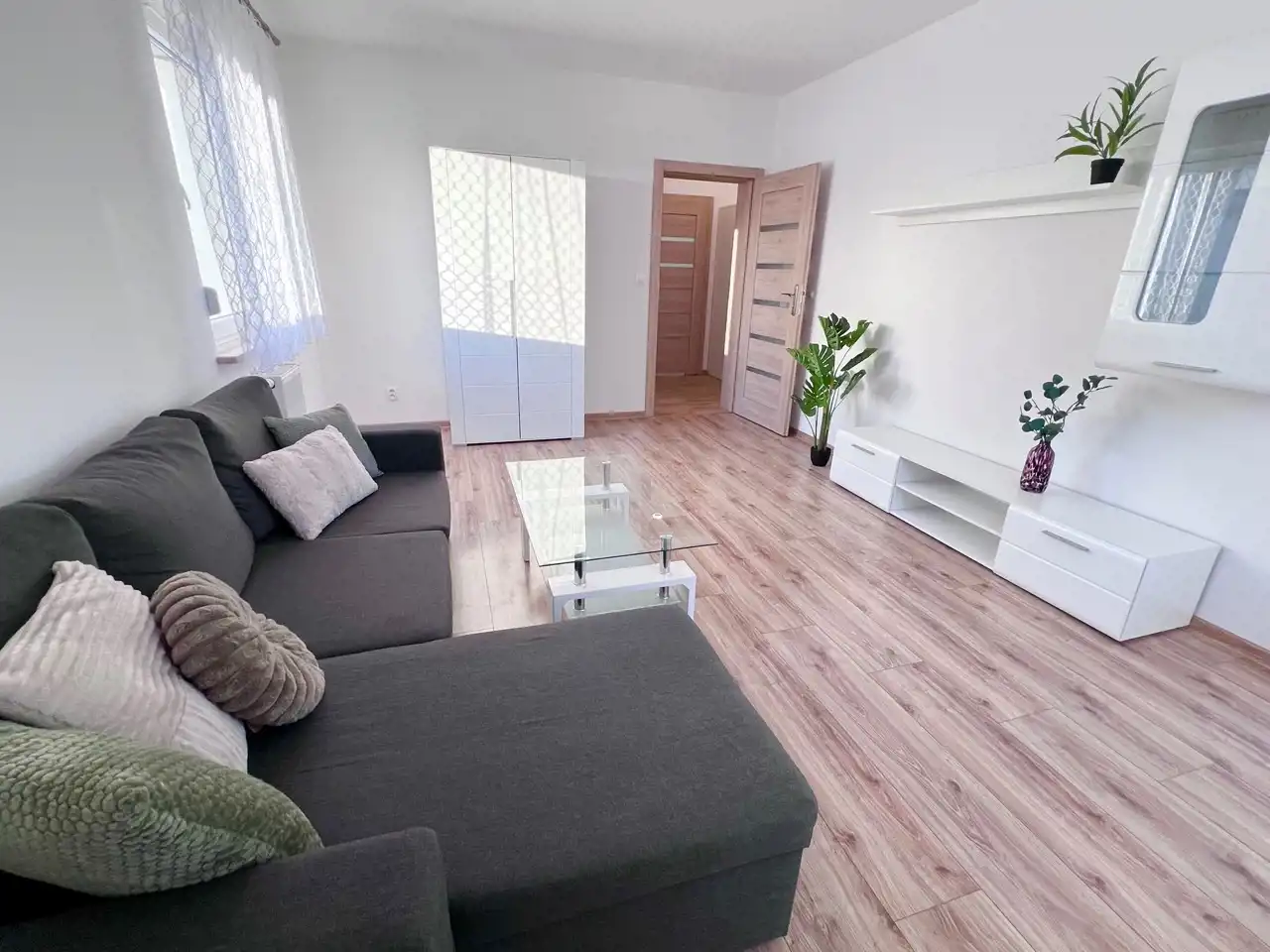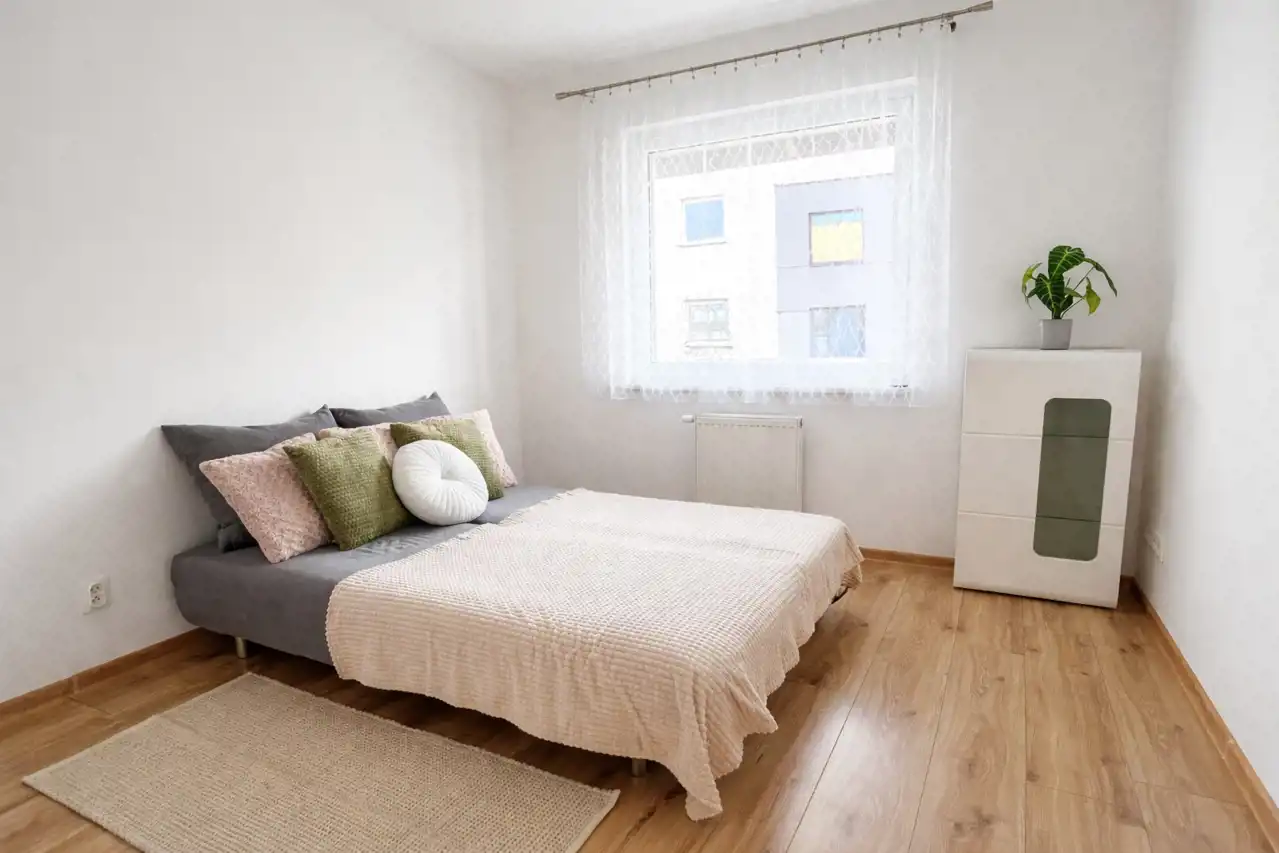 Mieszkanie jest w pełni wyposażone, umeblowane i gotowe do wprowadzenia. Kuchnia z meblami i sprzętem AGD (lodówka, piekarnik, płyta, zmywarka) oraz stołem z krzesłami. Dwa niezależne pokoje z rozkładanymi kanapami i meblami. Z większego pokoju wyjście na duży balkon. W przedpokoju dodatkowe miejsce do przechowywania rzeczy - wygodna szafa oraz komoda. Łazienka z prysznicem i pralką.