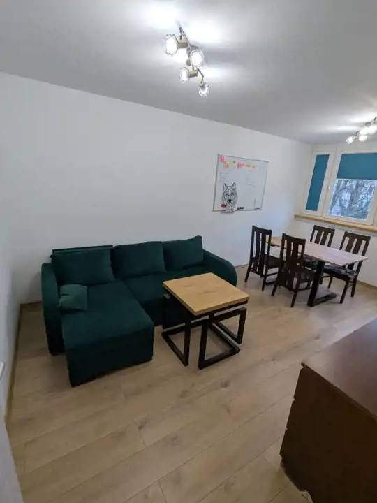 Wnętrze jest urządzone w nowoczesnym stylu, bardzo wygodne i przytulne. W sypialni lóżko ma nowy materac ortopedyczny. Mieszkanie jest jasne, a okolica cicha i zielona – w pobliżu drzewka, brak miejskiego hałasu, bezproblemowe parkowanie.