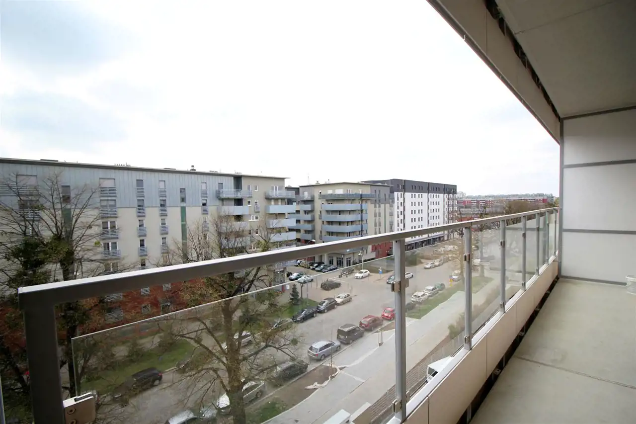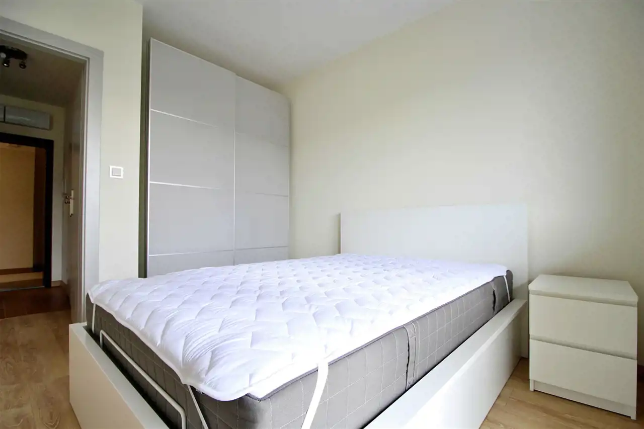 Lokal składa się z salonu z aneksem kuchennym wyposażonym w niezbędny sprzęt AGD (płyta grzewcza, piekarnik, zmywarka, okap), sypialni, łazienki z prysznicem i pralką, przedpokoju oraz dużego balkonu. W pełni umeblowane i wyposażone.