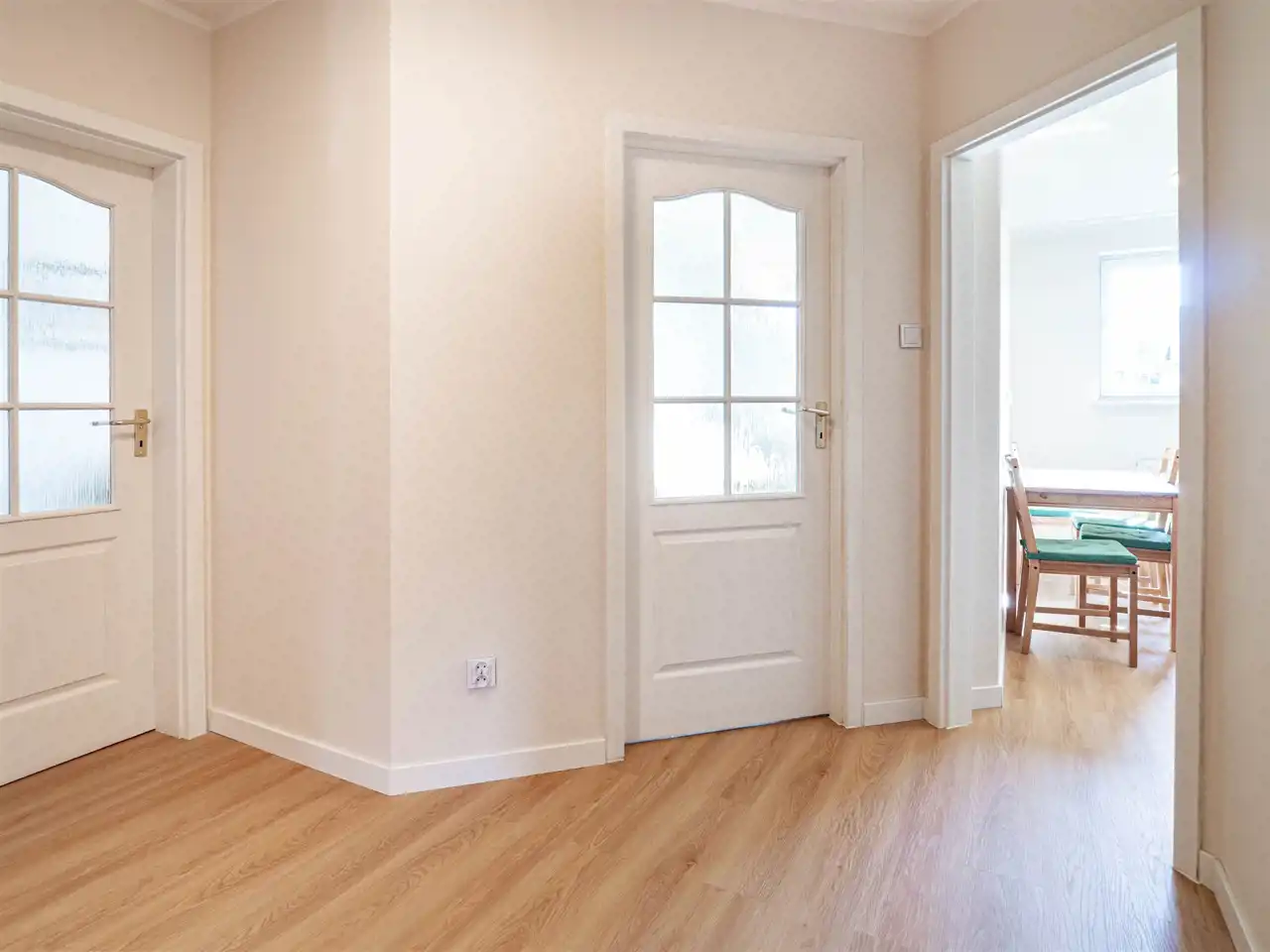 - Przedpokój: przestronny z dużą szafą w zabudowie, zapewniającą mnóstwo miejsca na przechowywanie odzieży i innych przedmiotów,