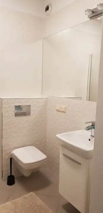 Mieszkanie jest całkowicie wyposażone i wykończone materiałami wysokiej jakości.