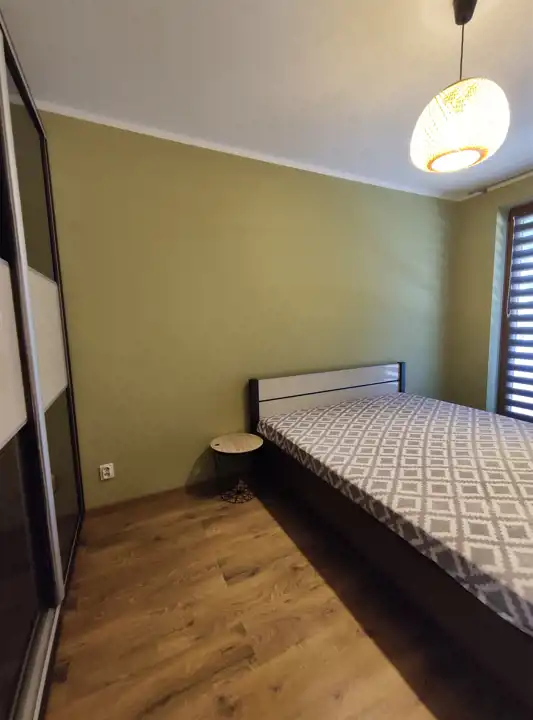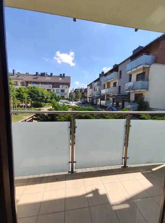 Składa się z dwóch pokoi (sypialni i pokoju dziennego), oddzielnej kuchni, łazienki, przedpokoju i balkonu. Kuchnia w pełni wyposażona: płyta ceramiczna, piekarnik, lodówka, zmywarka, okap, oraz naczynia i drobny sprzęt w kuchni.