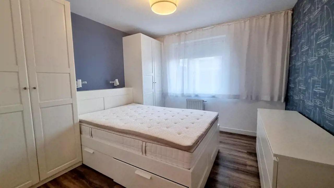 * Sypialnia z łóżkiem kontynentalnym, 2 szafy, komoda.