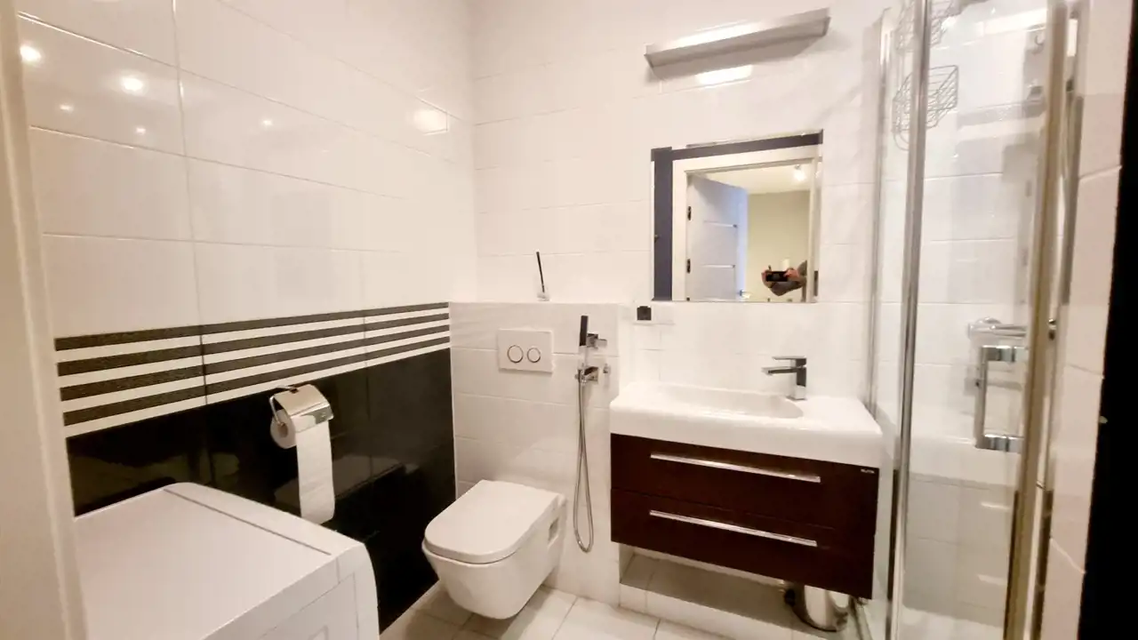 * Kuchnia w pełni wyposażona (zmywarka, piekarnik, lodówka, płyta indukcyjna, drobny sprzęt agd)
