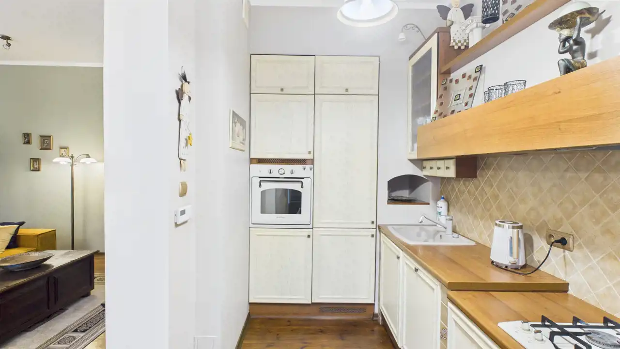 Apartament przeszedł designerski remont i wykończony został materiałami wysokiej klasy. Na wyposażeniu znajdują się m.in.: lodówka, zmywarka, piekarnik, płyta gazowa, pralka, telewizor.