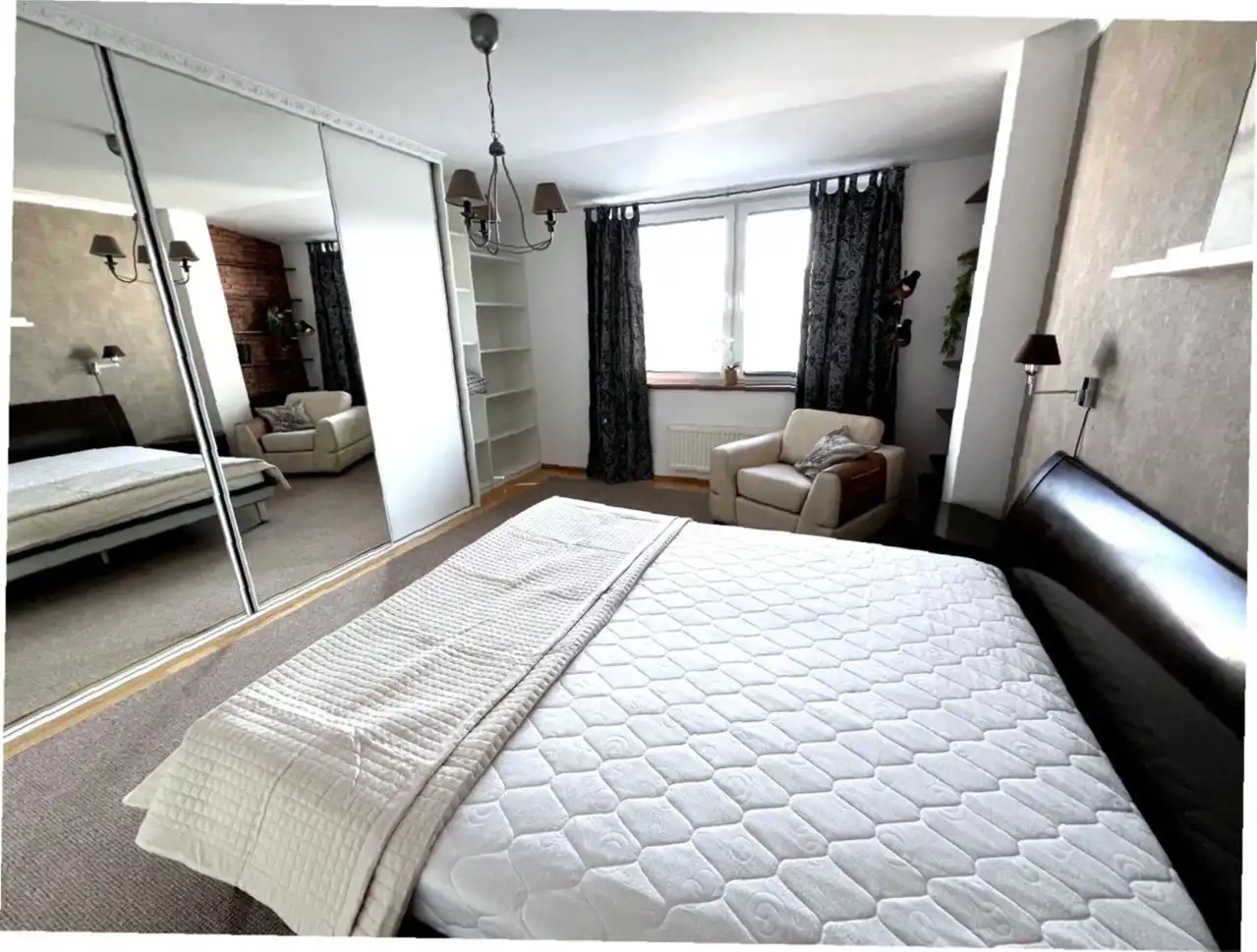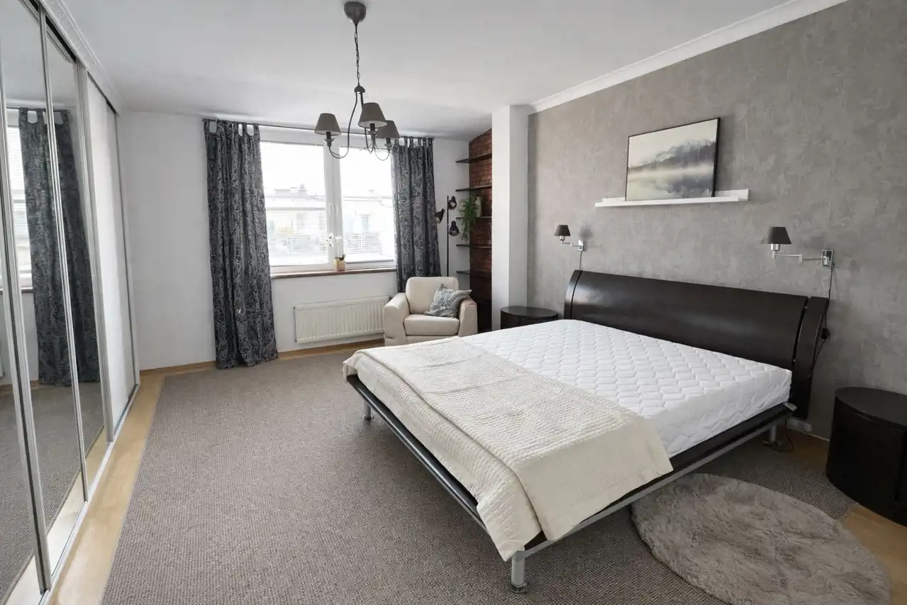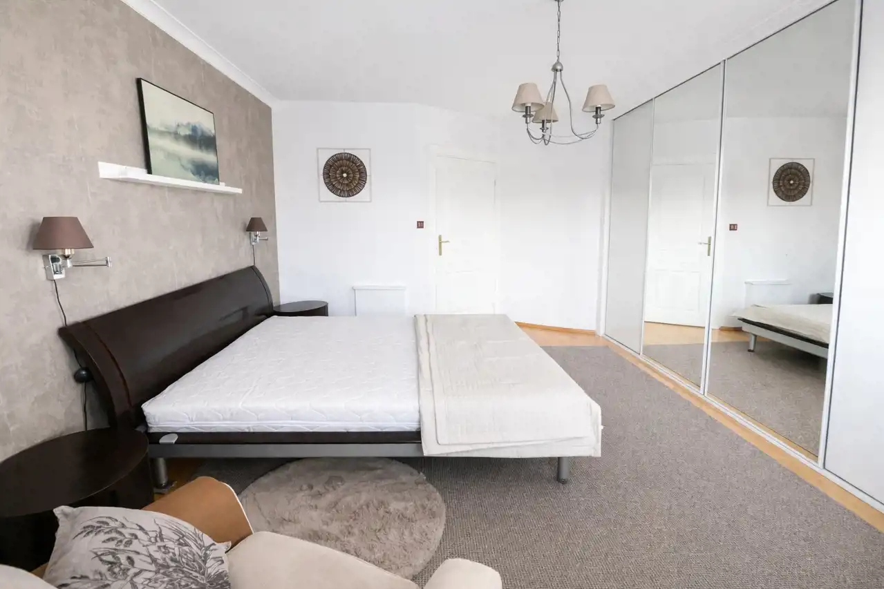 - wygodna sypialnia z dużym wygodnym łóżkiem oraz pojemną szafą w zabudowie,