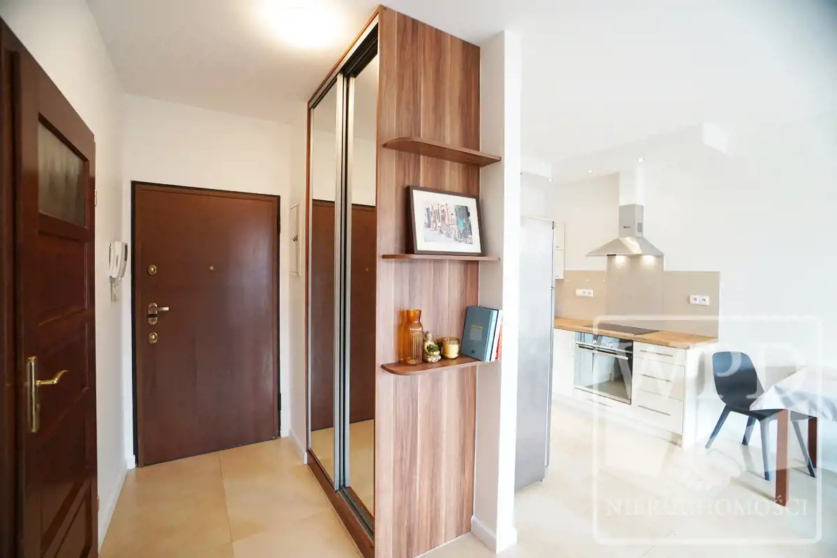 Apartament w Centrum Do wynajęcia komfortowy apartament (dwa pokoje) o powierzchni 44 m2. Znajduje się w nowoczesnym budynku z 2008r. przy ul. Inowrocławskiej (Apartamentowiec Platinum z ochroną, portiernią i monitoringiem) w niewielkiej odległości od Rynku. W odległości 300m znajduje się też przystanek autobusowy i tramwajowy. Apartament składa się z salonu połączonego z aneksem kuchennym, sypialni, przedpokoju, łazienki oraz balkonu. Mieszkanie o wysokim standardzie, w pełni umeblowane i wyposażone. W holu znajduje się szafa wnękowa. Kuchnia w zabudowie wraz ze sprzętem AGD. W salonie kanapa, ława, telewizor plazma + stolik. Sypialnia z łożem małżeńskim oraz szafą wnękową. Łazienka posiada kabinę prysznicową oraz pralkę.