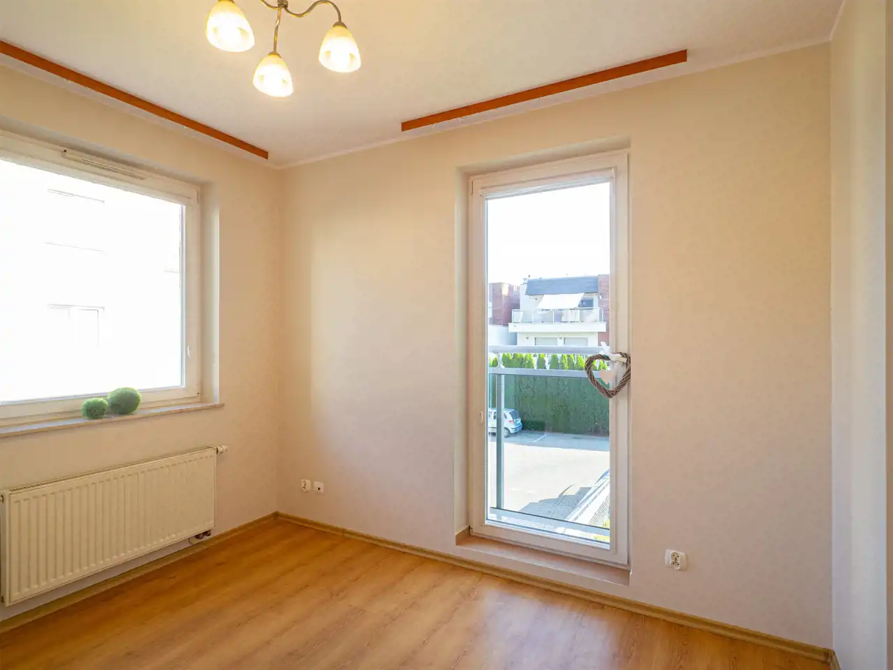 Sypialnia w swoim wnętrzu mieści duże, dwuosobowe łóżko z materacem natomiast drugi pokój można wykorzystać jako sypialnię lub gabinet do pracy w domu.
