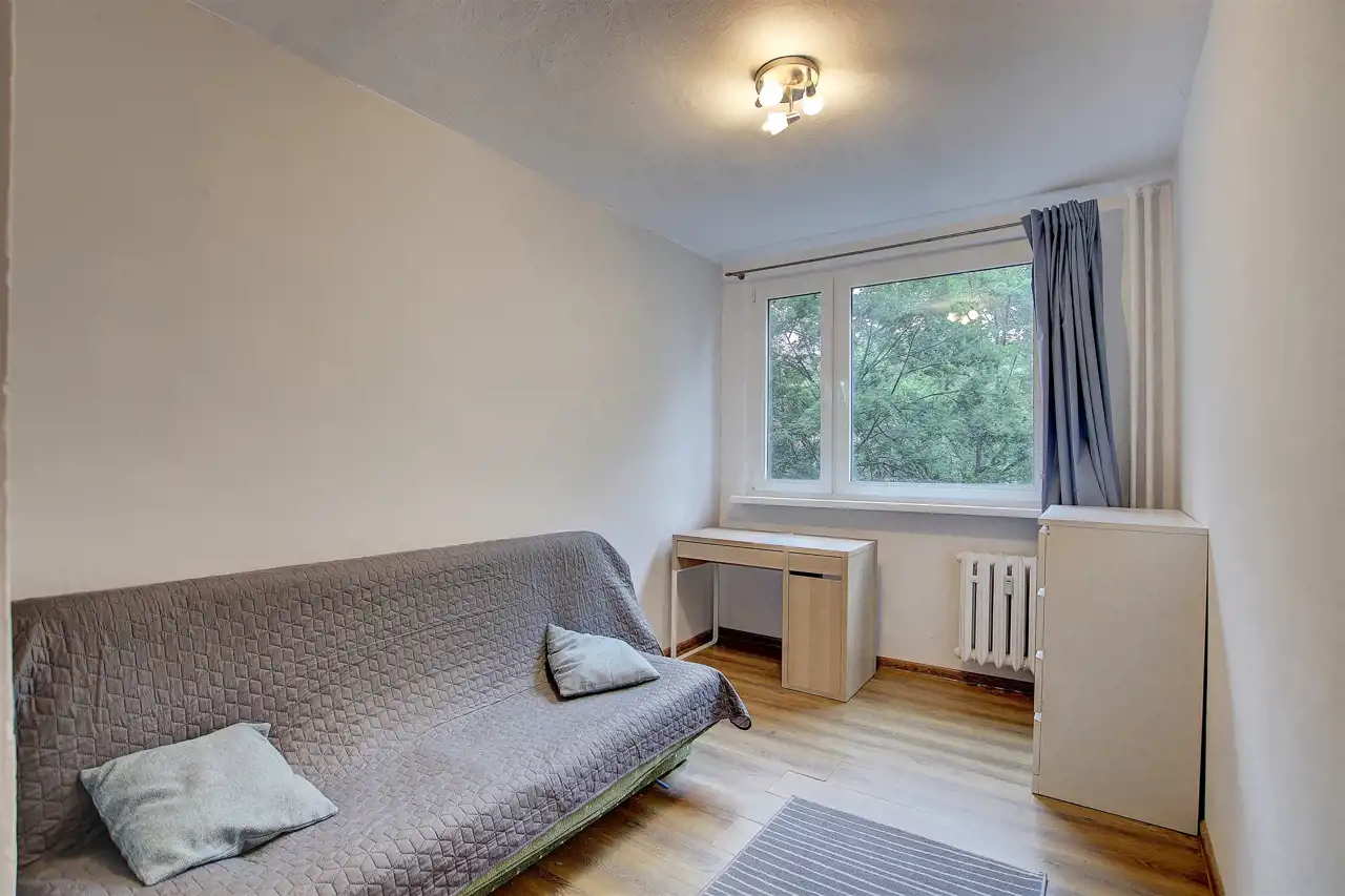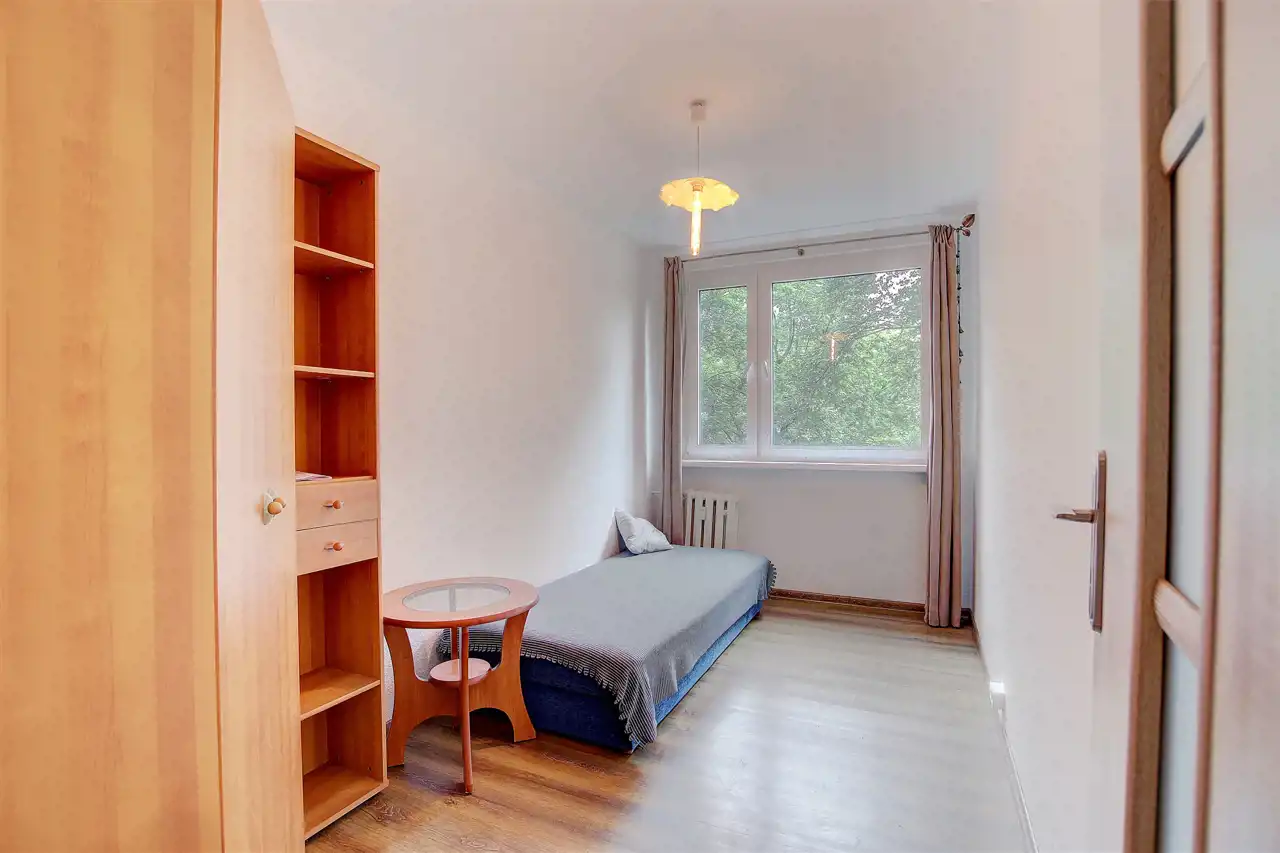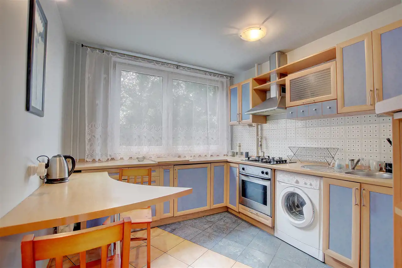 Lokal jest w pełni umeblowany i wyposażony w sprzęt AGD - lodówka z zamrażarką, płyta grzewcza, piekarnik, pralka. Mieszkanie w dobrym standardzie, idealne dla trzech osób!