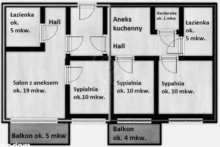Dodatkowo do mieszkania przynależy balkon o powierzchni około 5 m² (nie wliczony do powierzchni mieszkania).
