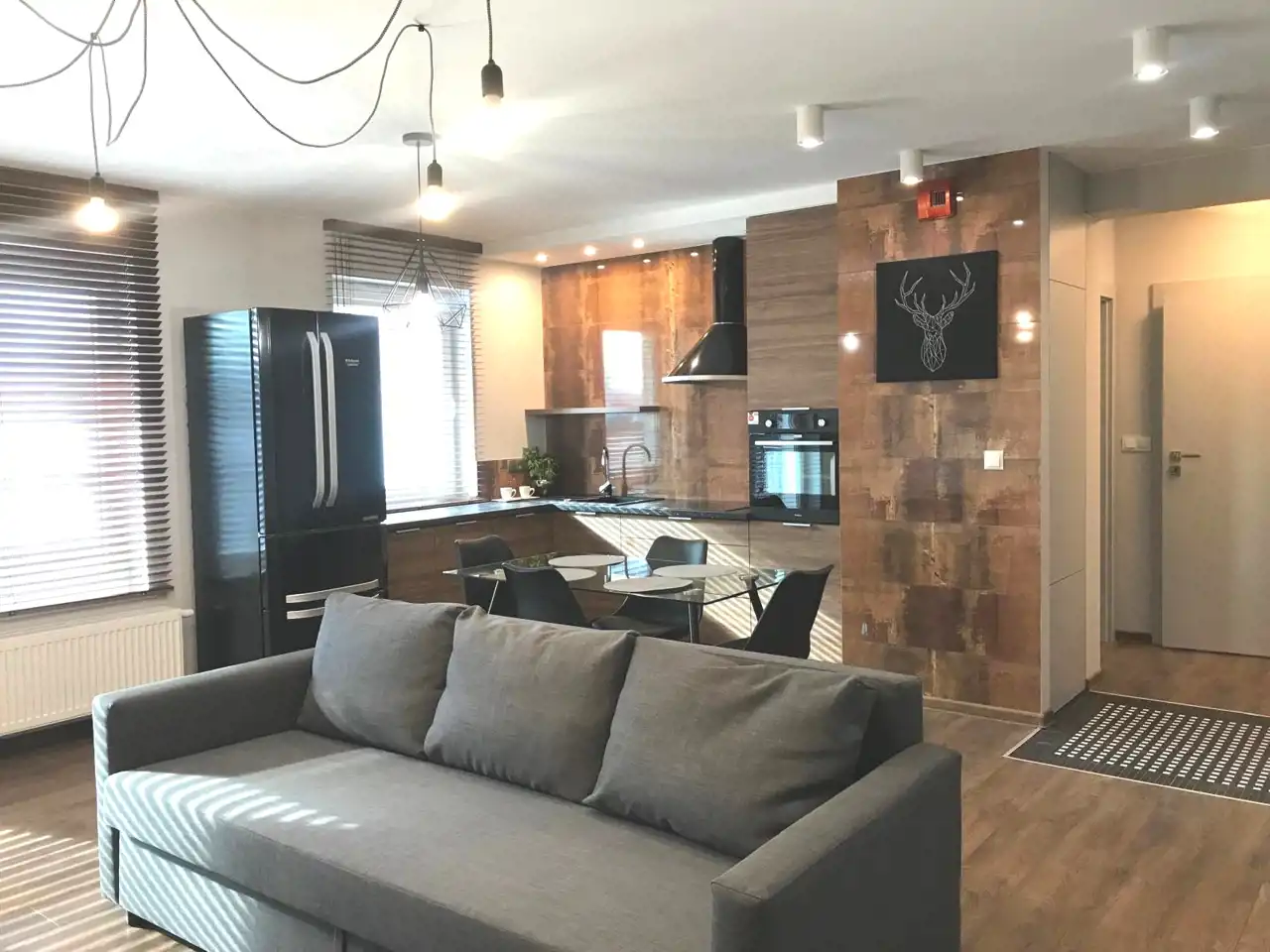 - salon z otwartą kuchnią