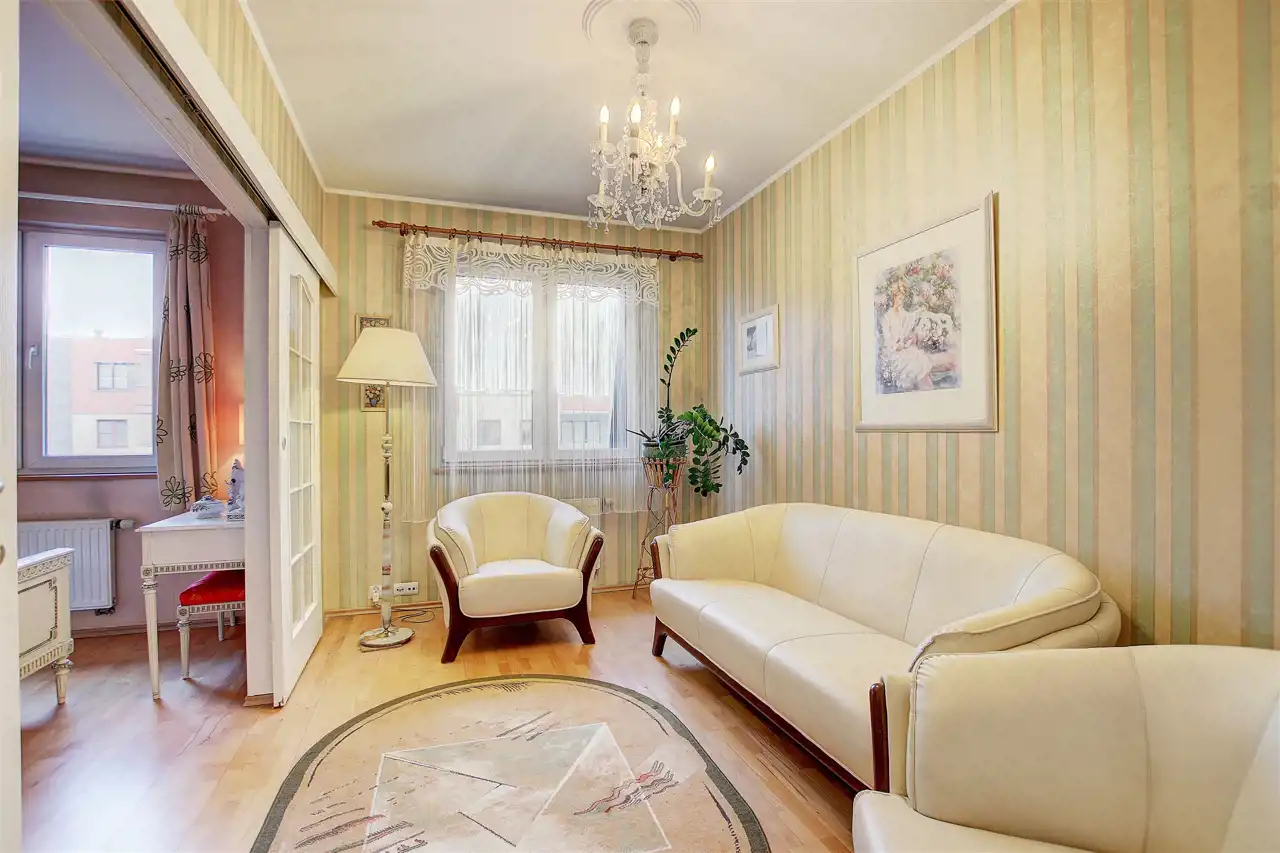 - przestronny salon z wyjściem na balkon i widokiem na ciche podwórko