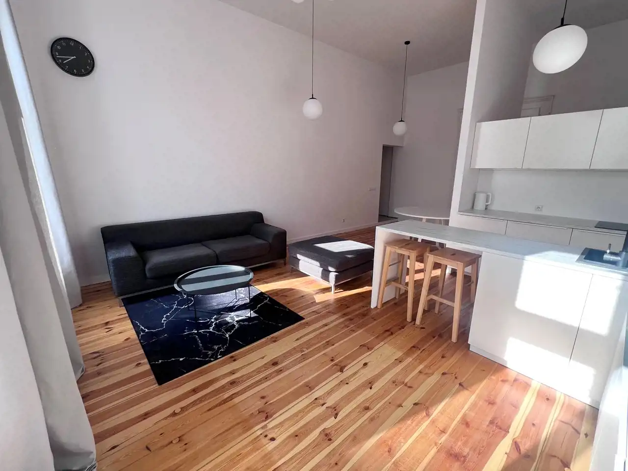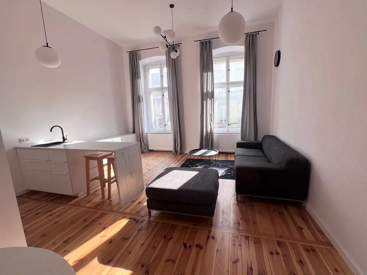 To mieszkanie wyróżnia się niepowtarzalnym, paryskim stylem wykończenia. Drewniane podłogi, oryginalna stolarka drzwiowa oraz imponująca wysokość pomieszczeń (niemal 4 metry) tworzą niepowtarzalny klimat. Przestronny pokój dzienny z kuchnią i jadalnią to idealne miejsce do relaksu. Dodatkowo, za oryginalnymi przedwojennymi drzwiami znajdziesz garderobę oraz funkcjonalną łazienkę. W mieszkaniu wydzielono również komfortową przestrzeń na sypialnię, która zapewni Ci pełną prywatność.