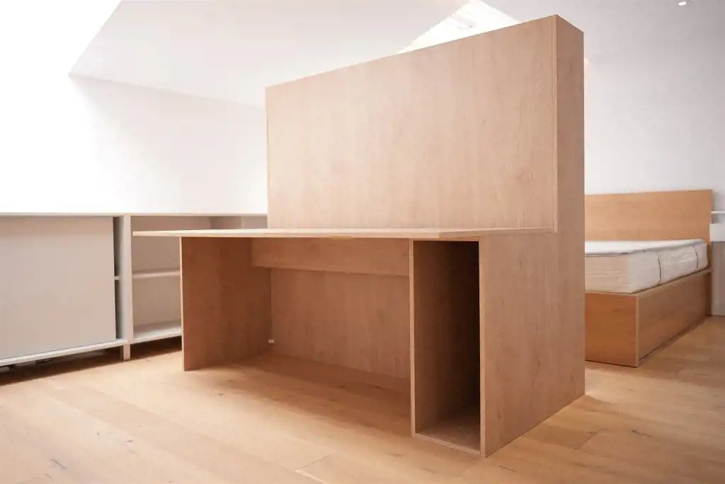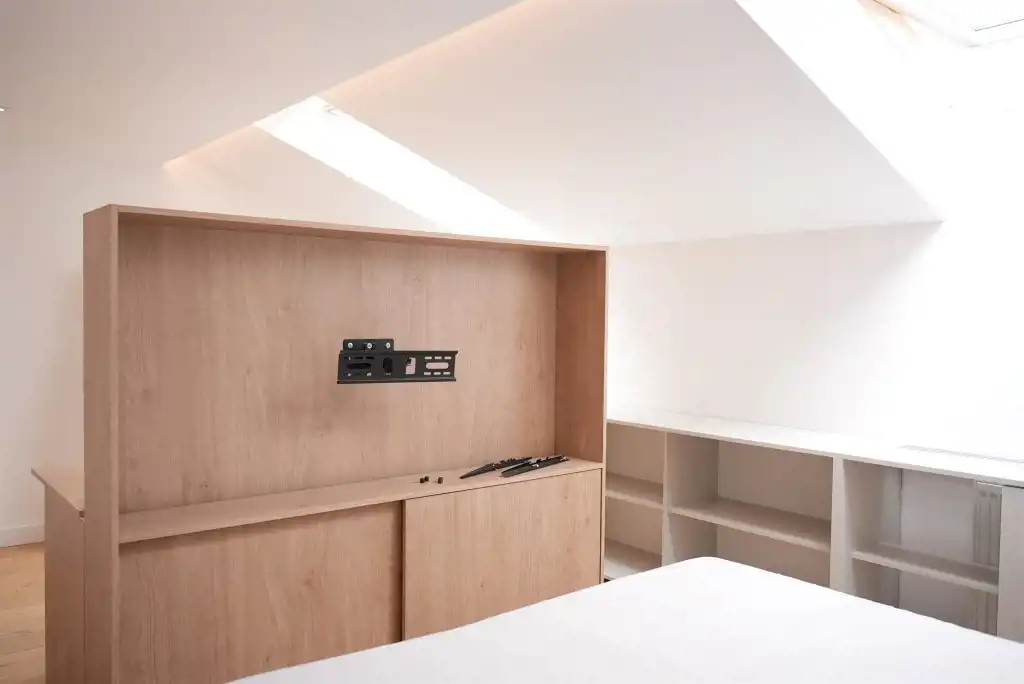 Mieszkanie w pełni wyposażone i umeblowane z dużą ilością szaf i miejsca do przechowywania.
