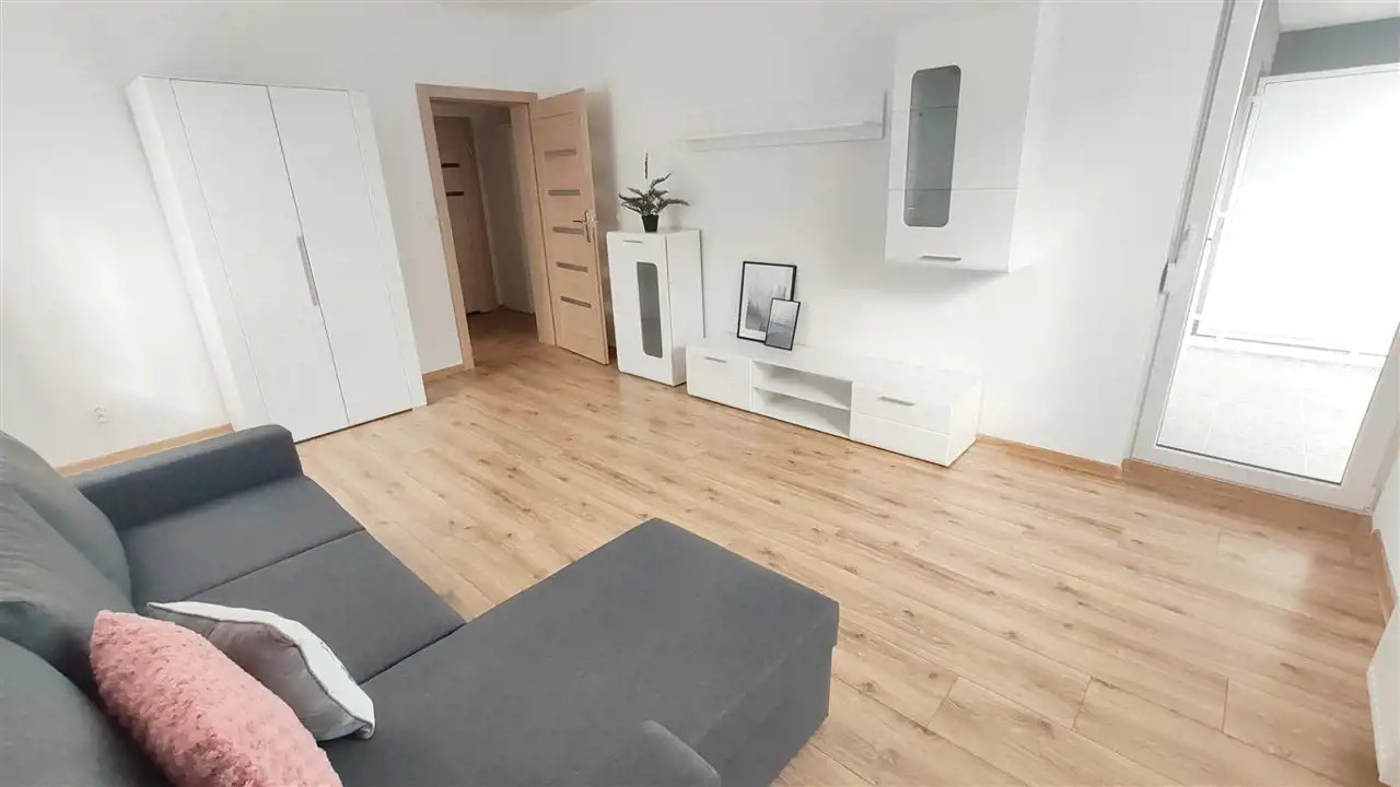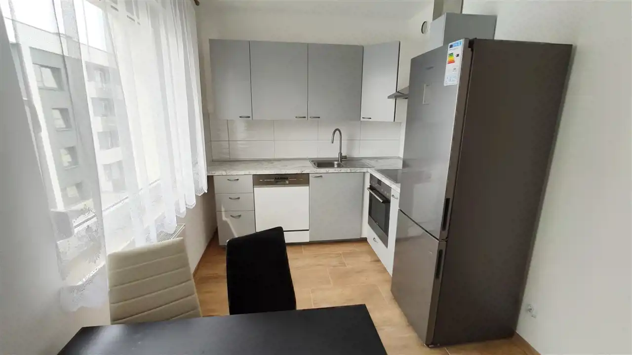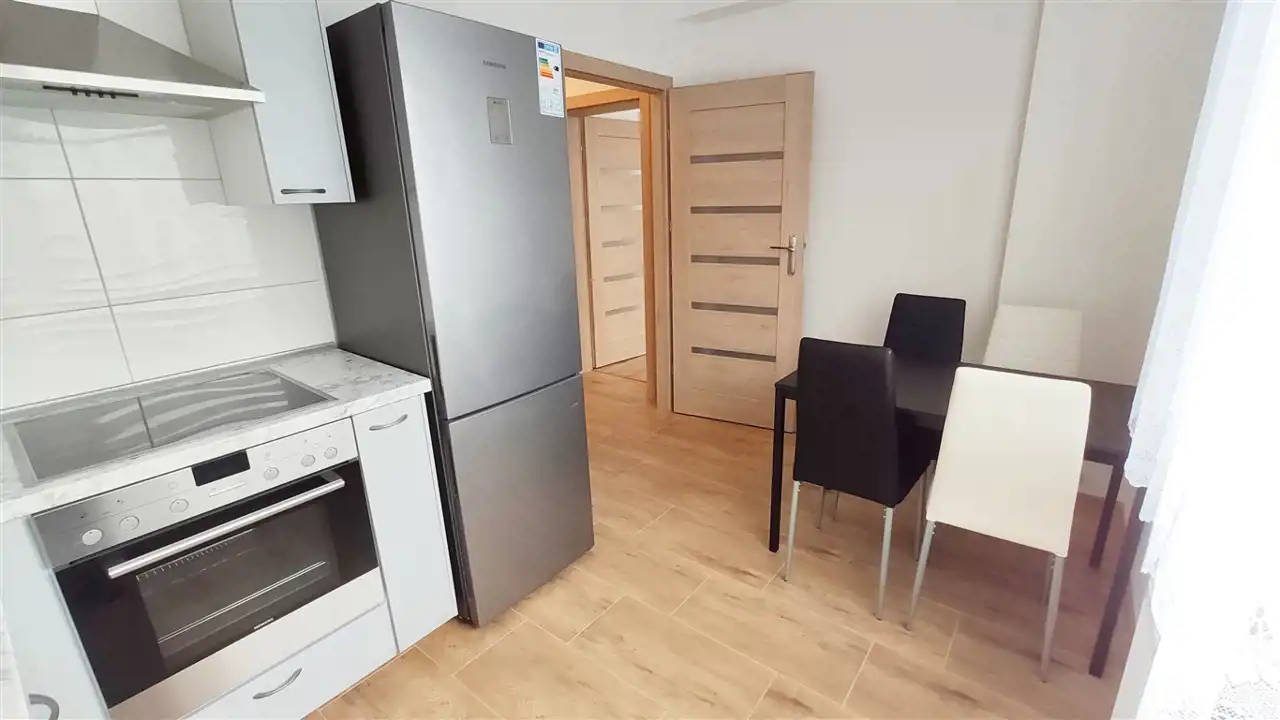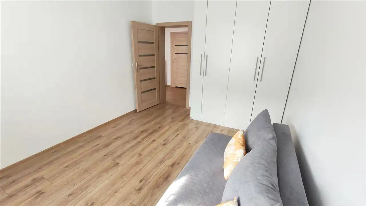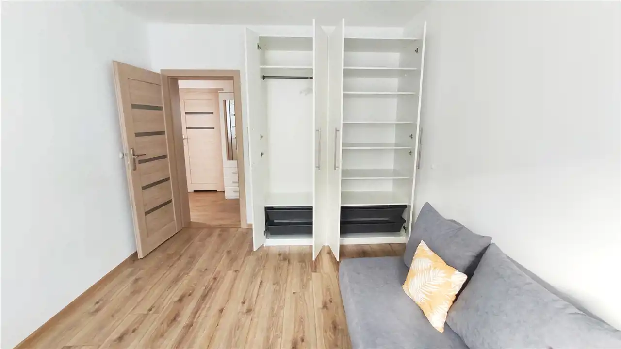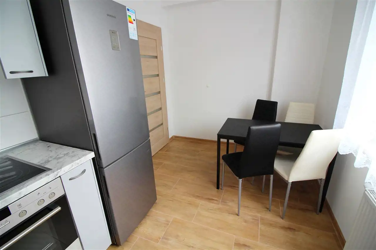 Mieszkanie jest w pełni wyposażone, umeblowane i gotowe do wprowadzenia. Kuchnia z meblami i sprzętem AGD (lodówka, piekarnik, płyta, zmywarka) oraz stołem z krzesłami. Dwa niezależne pokoje z rozkładanymi kanapami i meblami. Z większego pokoju wyjście na duży balkon. W przedpokoju dodatkowe miejsce do przechowywania rzeczy - wygodna szafa oraz komoda. Łazienka z prysznicem i pralką.