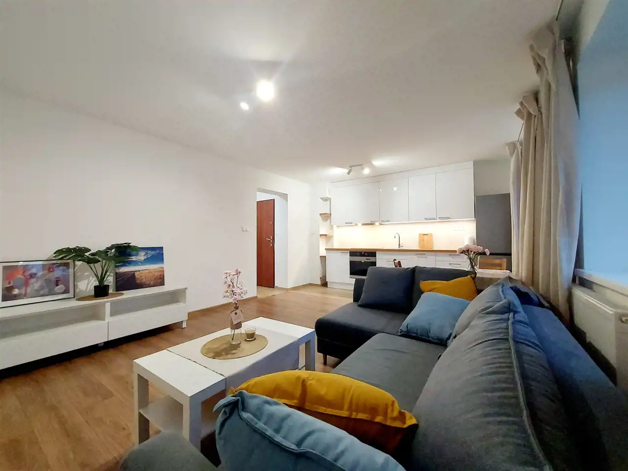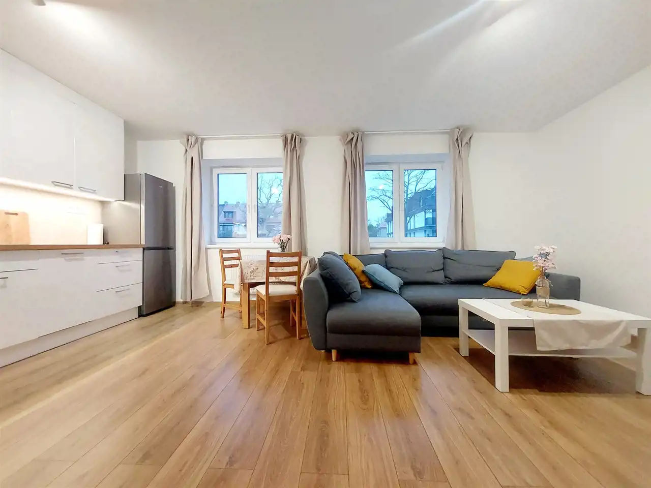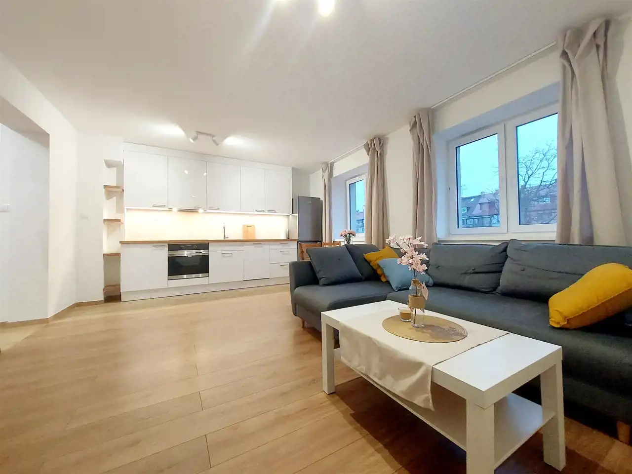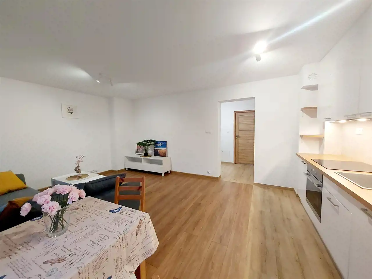 Nieruchomość składa się z salonu z kuchnią w aneksie, sypialni, łazienki z prysznicem oraz wc, przedpokoju. Kuchnia z meblami i sprzętem agd (lodówko-zamrażarka, zmywarka, płyta indukcyjna, piekarnik elektryczny, zlewozmywak, okap). Nieruchomość umeblowana. Ogrzewanie miejskie. Okna plastikowe. Dodatkowo piwnica o powierzchni około 8 m.kw.
