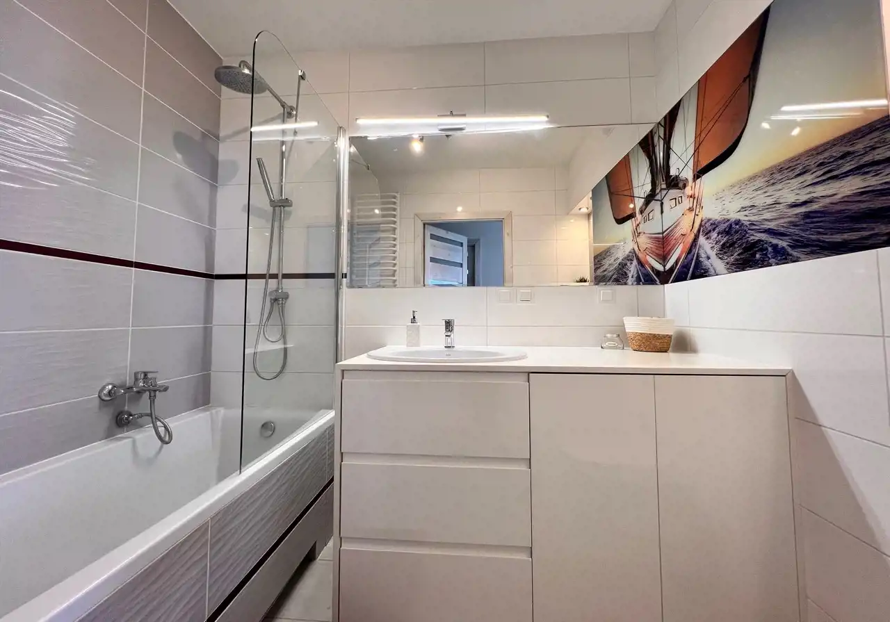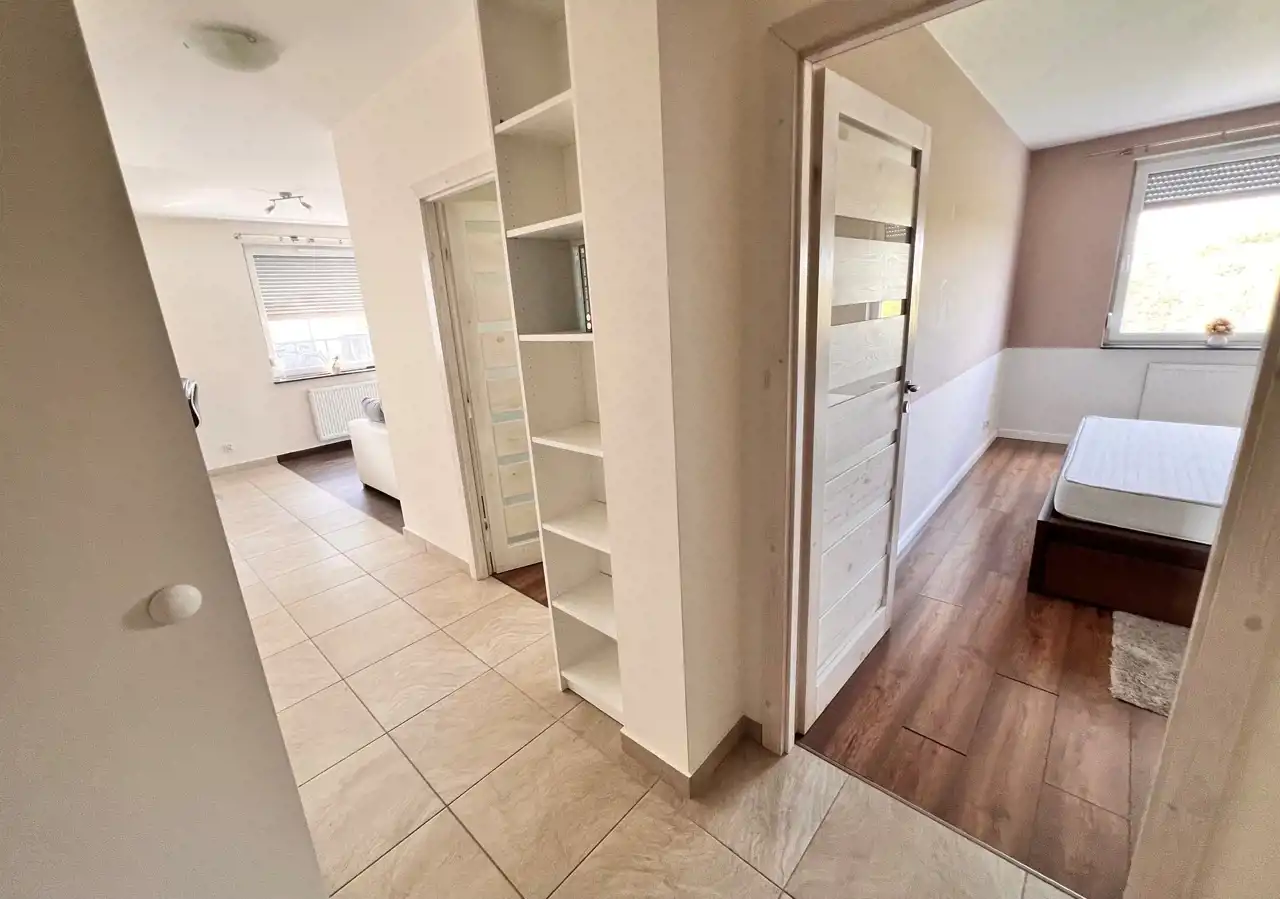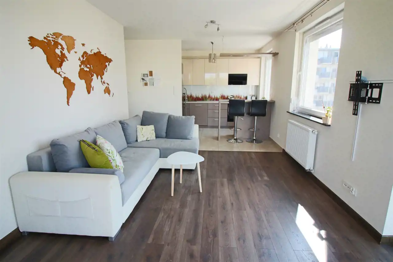 Mieszkanie jest jasne, słoneczne, bardzo dobrze utrzymane, gotowe do natychmiastowego zamieszkania. Kuchnia z meblami w zabudowie z niezbędnym sprzętem AGD (lodówko zamrażalka, płyta, piekarnik, zmywarka). Pokój dzienny z wygodnym narożnikiem, bardzo dobrze doświetlony. Sypialnia z podwójnym łóżkiem z materacem, wyposażona w szafę. Drugi pokój - może służyć jako domowe biuro lub pokój gościnny/dziecięcy. W łazience wanna z parawanem prysznicowym oraz pralka. Dodatkowo wygodna i pojemna garderoba. Całość uzupełnia balkon (8m2) z pięknym widokiem na las.