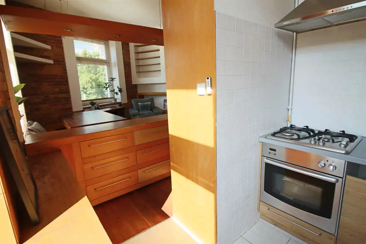 - kuchnia z oknem, częściowo otwarta na pokój dzienny,