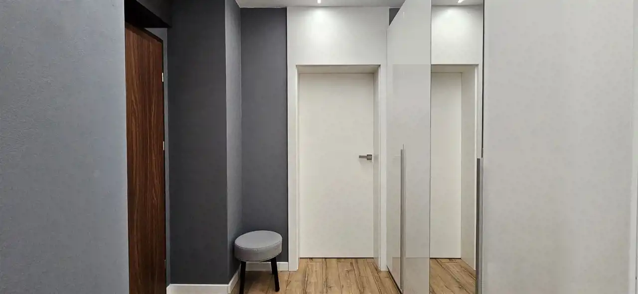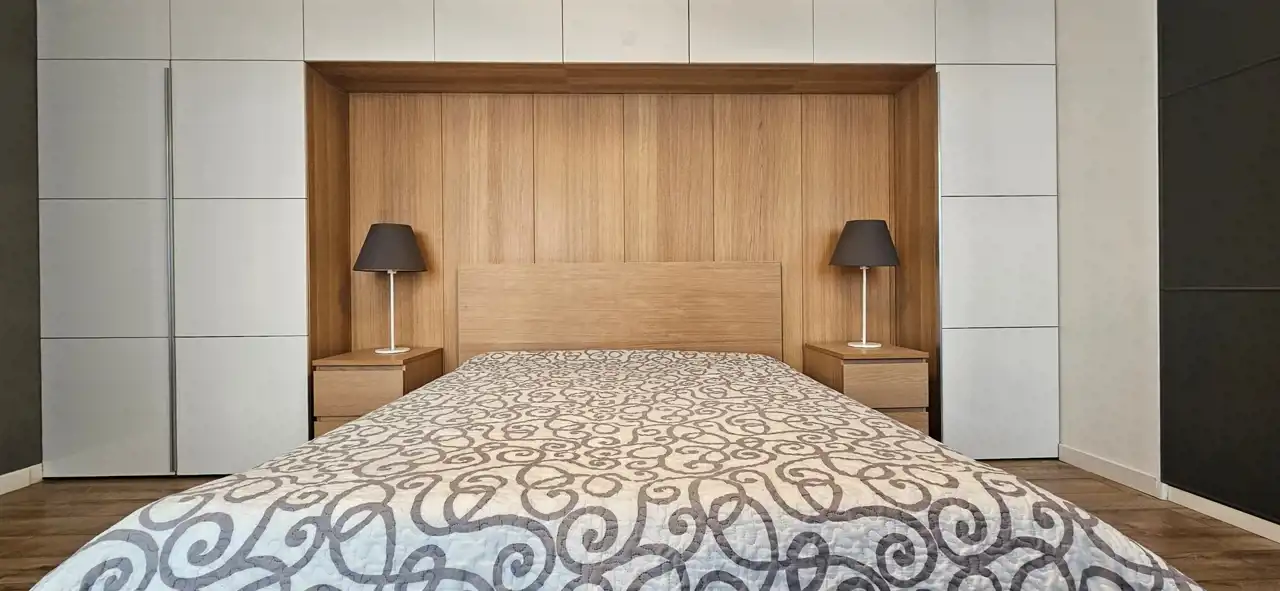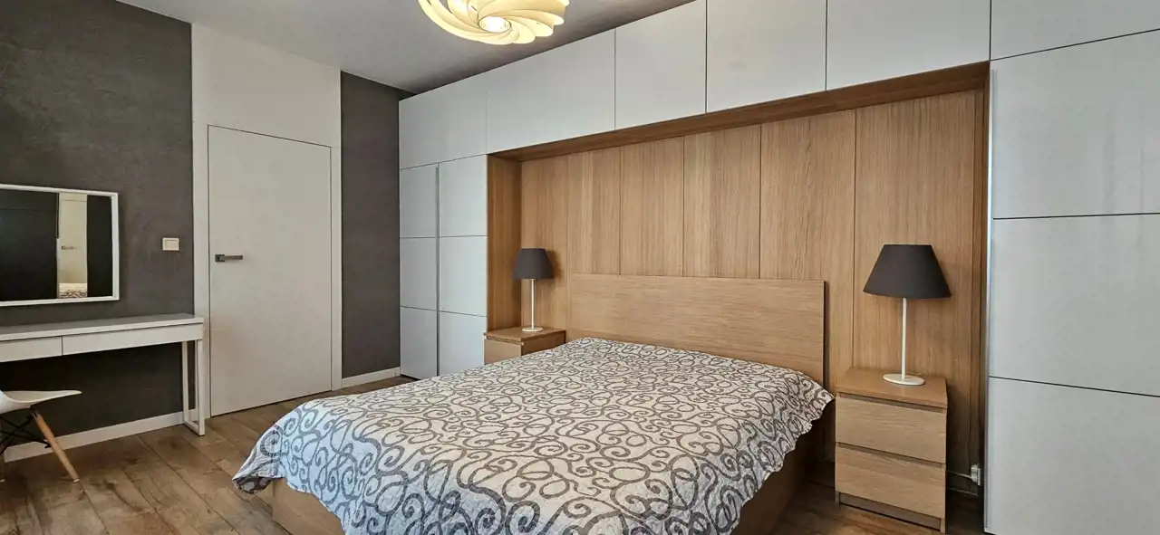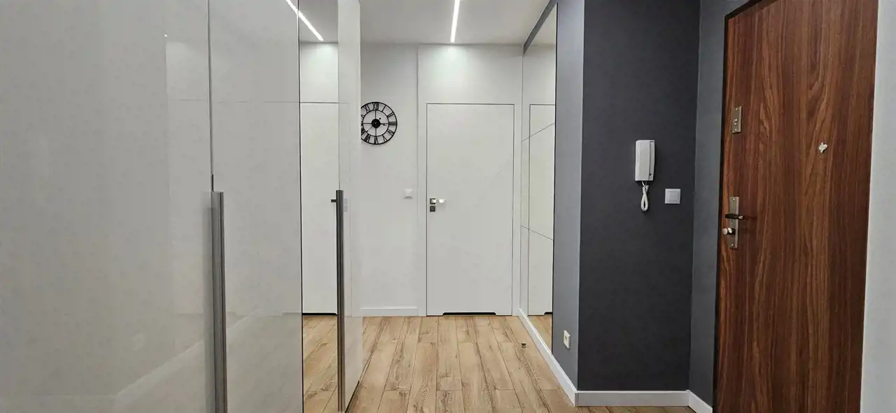 Kompletnie wyposażony w meble, agd oraz dużą ilość szaf wykonanych na wymiar zapewniających wysoką funkcjonalność.