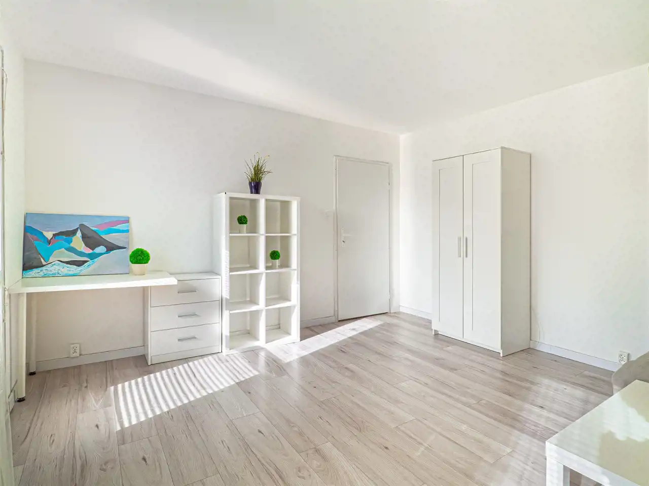 - Pokój 2: wyposażony w łóżko, szafę, biurko, regał na książki.