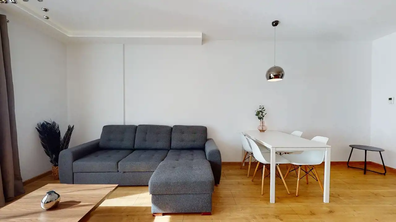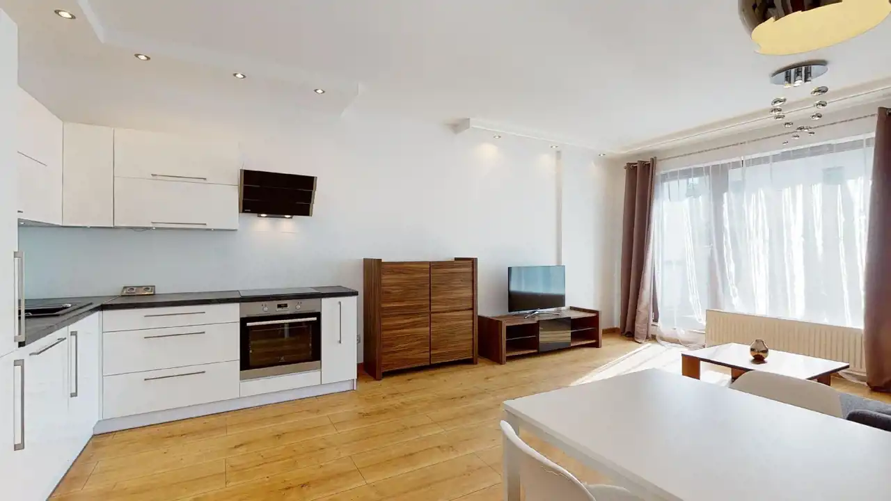 - Komfortowe wnętrze: Funkcjonalny układ 2 pokoi, garderoba i w pełni wyposażone wnętrze (m.in. sprzęt AGD) gwarantują wygodę i oszczędzają Twój czas – możesz się wprowadzić od razu.