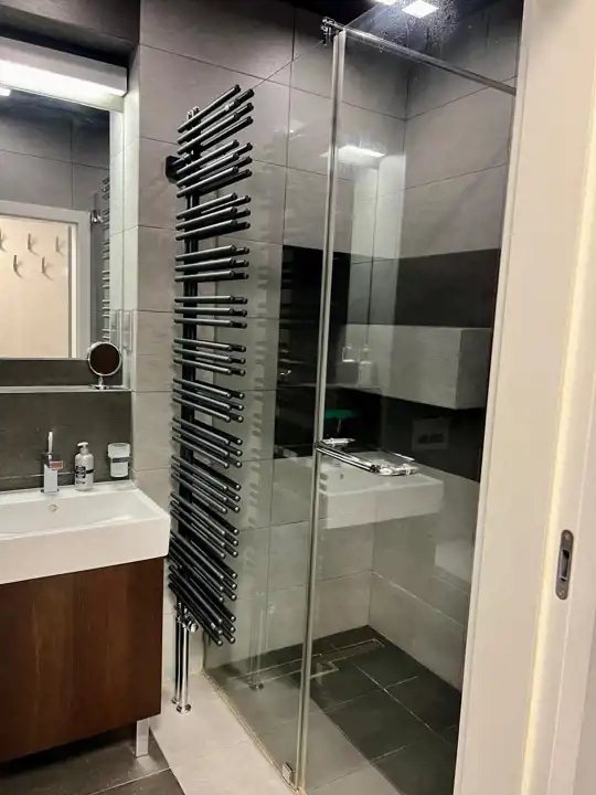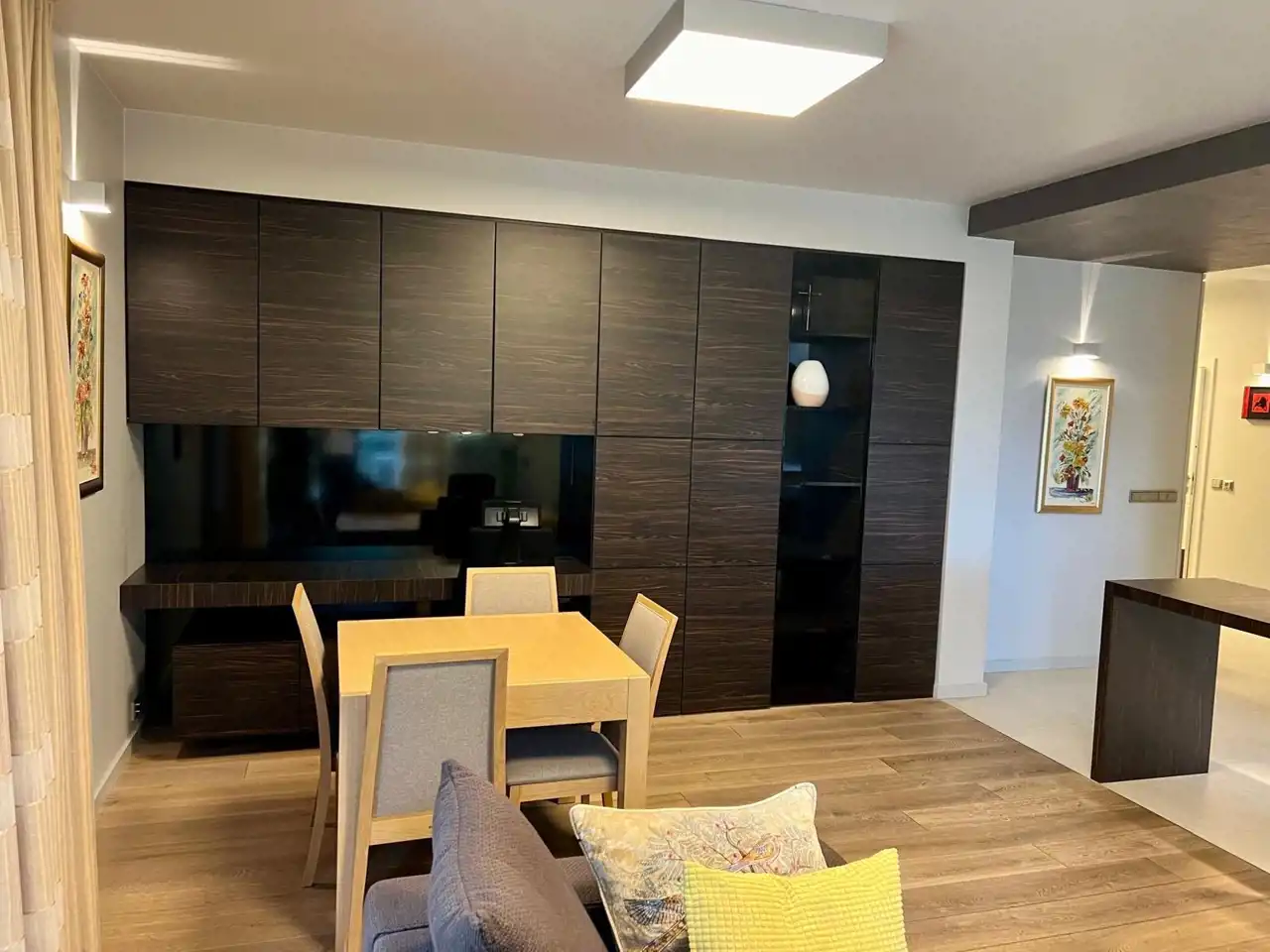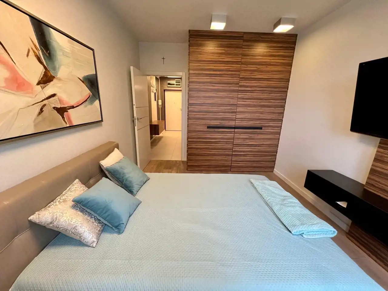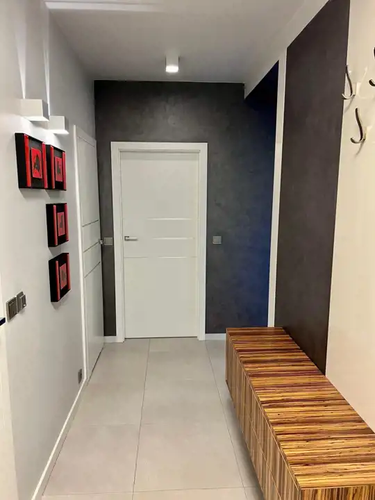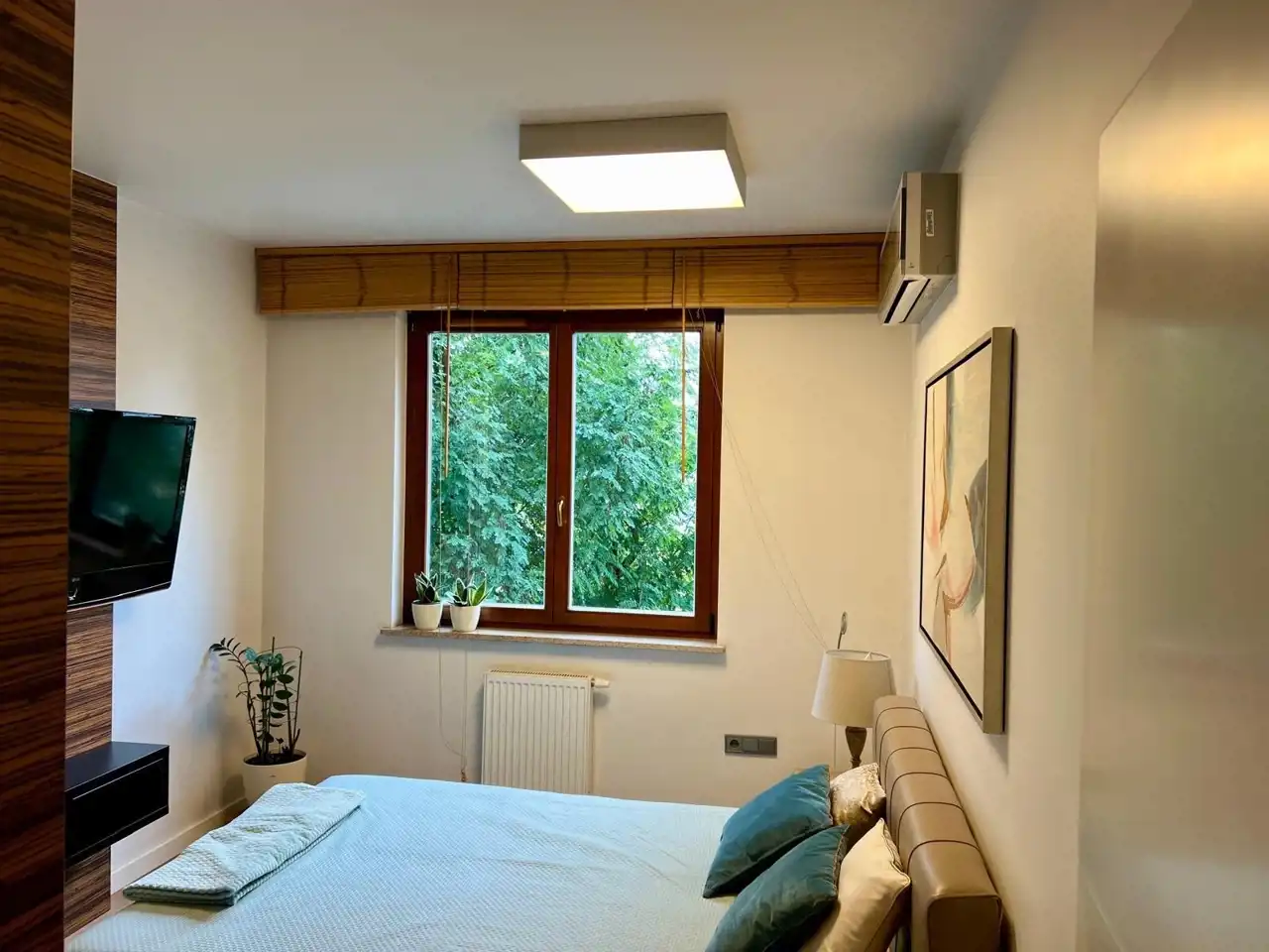 Niewątpliwym atutem mieszkania jest jego przestrzeń, przestronny salon połączony z kuchnią, wygodna garderoba, sypialnia, łazienka z prysznicem, duży hall. Mieszkanie jest w pełni wyposażone w meble oraz sprzęty AGD ( pralka, suszarka, zmywarka, lodówka, piekarnik, płyta). Sypialnia wyposażona w łóżko (140x200), szafę, TV, szafkę nocną. W salonie rozkładany stół, biurko do pracy, sofa, TV.