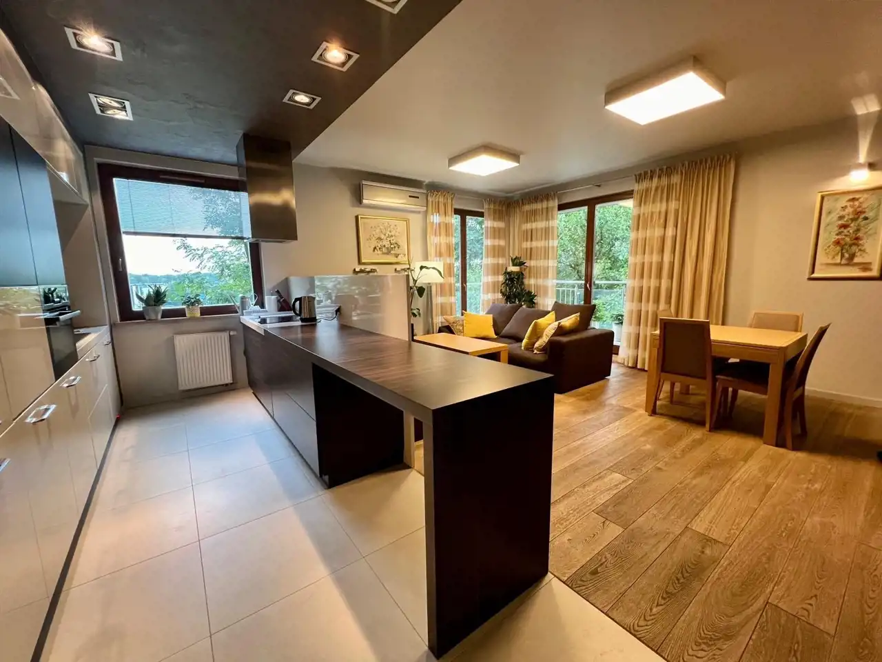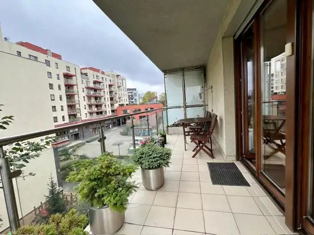 Lokal o powierzchni 58,26 mkw. z dużym balkonem oraz garażem o powierzchni 28,82 mkw. zlokalizowanym pod budynkiem.