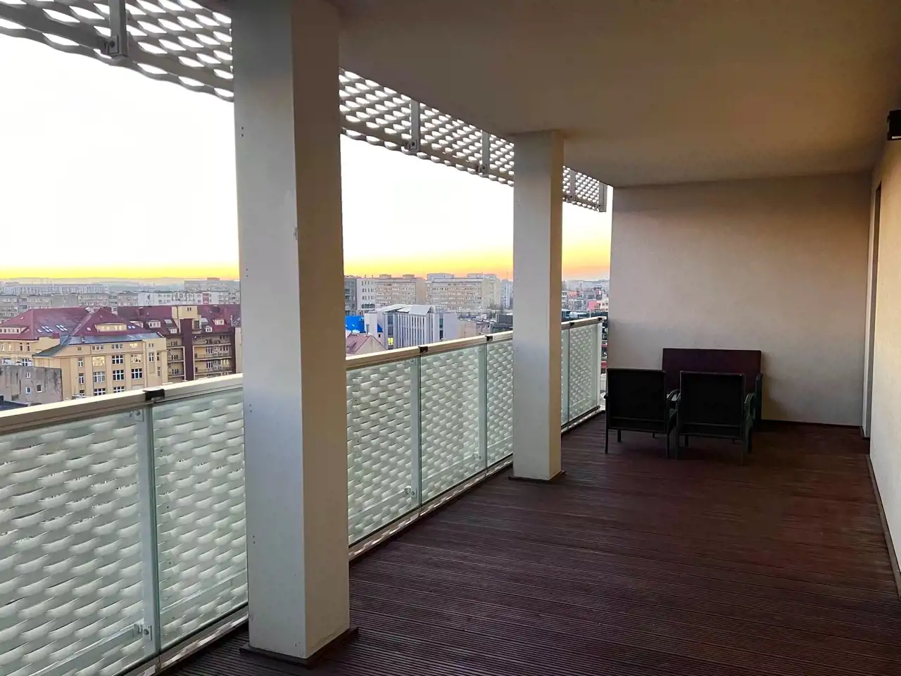Nieruchomość znajduję się na 10. piętrze w budynku 18-piętrowym. Z tarasu rozpościera się przepiękny widok na panoramę Starego Miasta.