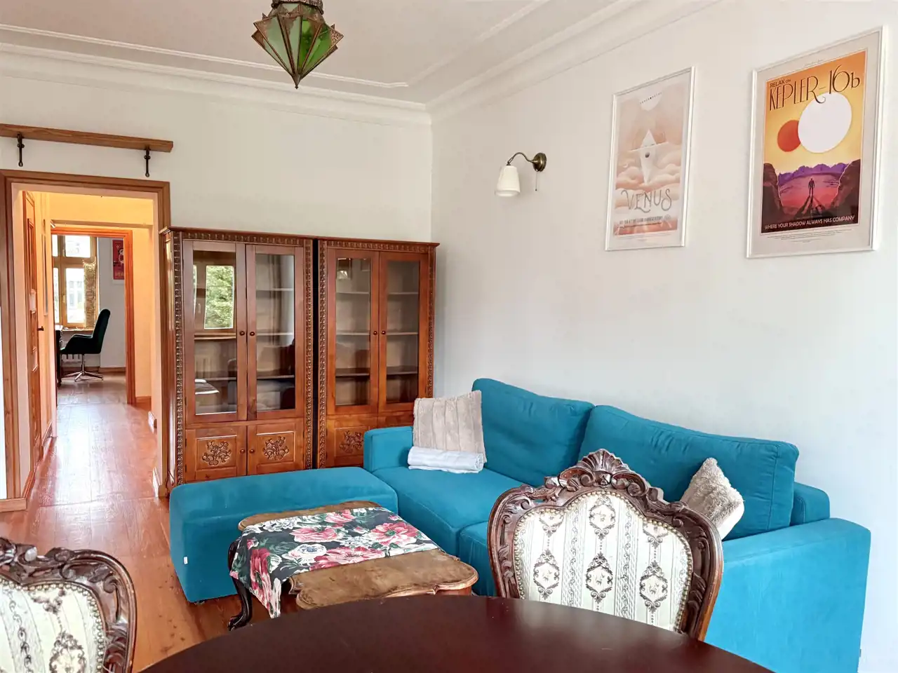 Obecnie w mieszkaniu nie ma zielonej kanapy widocznej na zdjęciach. Będzie zakupiona nowa.