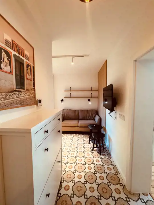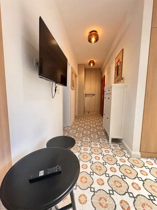 Mieszkanie składa się z 2 zamykanych pokoi-jeden może pomieścić 2 osoby: parę albo znajomych, drugi 1-osobowy.), łazienki z WC oraz wspólnej przestrzeni kuchni z jadalnią i kącikiem telewizyjnym.