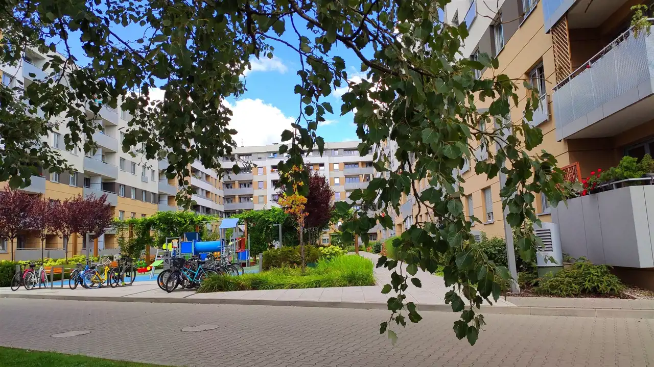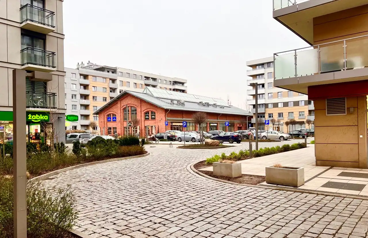 Świetna lokalizacja w centrum miasta. Doskonałe skomunikowanie z całym Wrocławiem – przystanki autobusowe, tramwajowe, dogodny dojazd rowerem i samochodem. Wszędzie jest blisko – w kilka minut można się znaleźć na wiodącej do Rynku Promenadzie Staromiejskiej lub dojechać głównymi arteriami w inne części Wrocławia. Na terenie osiedla Hala Tęcza z pysznymi śniadaniami i ofertą lunchową, Żabka, Delikatesy Blumiś, siłownia Well Fitness, cukiernia, kwiaciarnia, dentysta, przychodnia.
