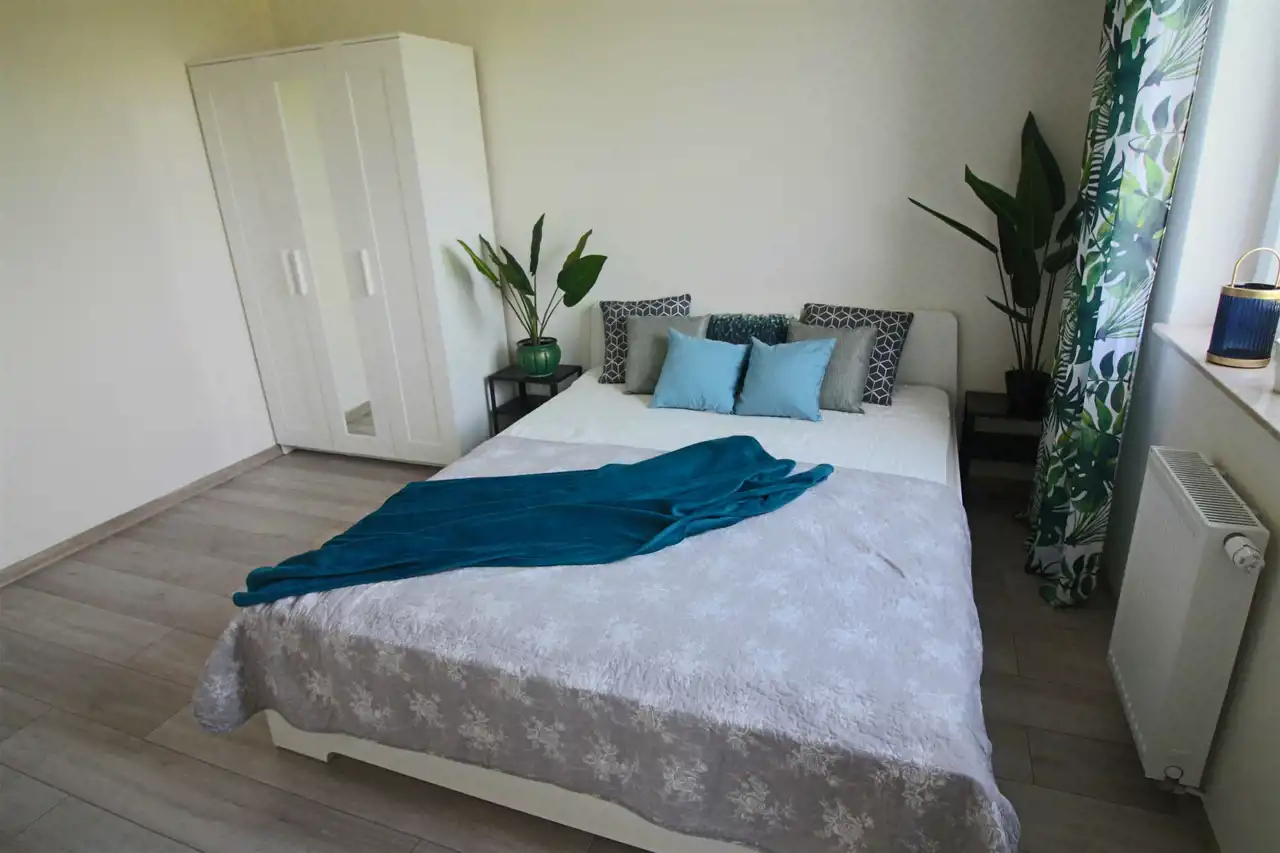 Mieszkanie jest w pełni wyposażone i umeblowane. Kuchnia wyposażona w meble oraz sprzęt AGD: lodówka, piekarnik, płyta, zmywarka. W pokoju dziennym narożnik, stół z krzesłami, komody, stolik rtv. Wyjście na balkon od strony wewnętrznego patio z fontanna i zielonymi nasadzeniami. Dwie sypialnie. Jedna z garderobą, druga z wyjściem na balkon. Wyposażone w łózko z materacem, kanapę oraz szafy.W łazience wanna z funkcją prysznica oraz pralka. Dodatkowo osobne WC z umywalka. W przedpokoju pojemna 3-drzwiowa szafa.