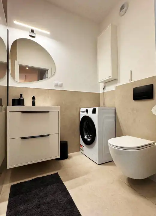 - przestronna łazienka z prysznicem i pralką