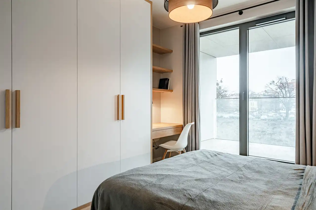 Apartament 2-pokojowy, o powierzchni 48mkw, na którą składają się przestronny salon połączony z aneksem kuchennym, komfortowa sypialnia, łazienka oraz przedpokój. Zarówno z salonu jak i z sypialni wyjście na taras gdzie przy blasku wschodzącego słońca można wypić pierwszą poranną kawę. Doskonale zaaranżowana przestrzeń zapewni komfort i funkcjonalność, którą przyszły Najemca doceni w codziennym użytkowaniu. Całość aranżacji dopełniają starannie dobrane dodatki i nastrojowe oświetlenie. Poczucie luksusu podkreślają imponujące przeszklenia i niepowtarzalny widok na szerokie zakole rzeki Odry oraz obsadzony platanami Bulwar Fizyków.