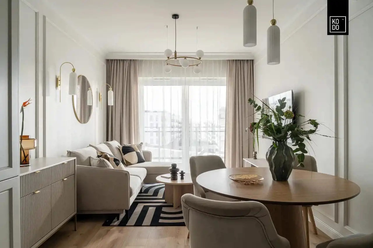 Do wynajęcia eleganckie, 50-metrowe mieszkanie zlokalizowane przy ul. Mieszczańskiej we Wrocławiu. To wyjątkowa przestrzeń, w której nowoczesność harmonijnie łączy się z klasyką, tworząc spójne i stylowe wnętrze o ponadczasowym charakterze.