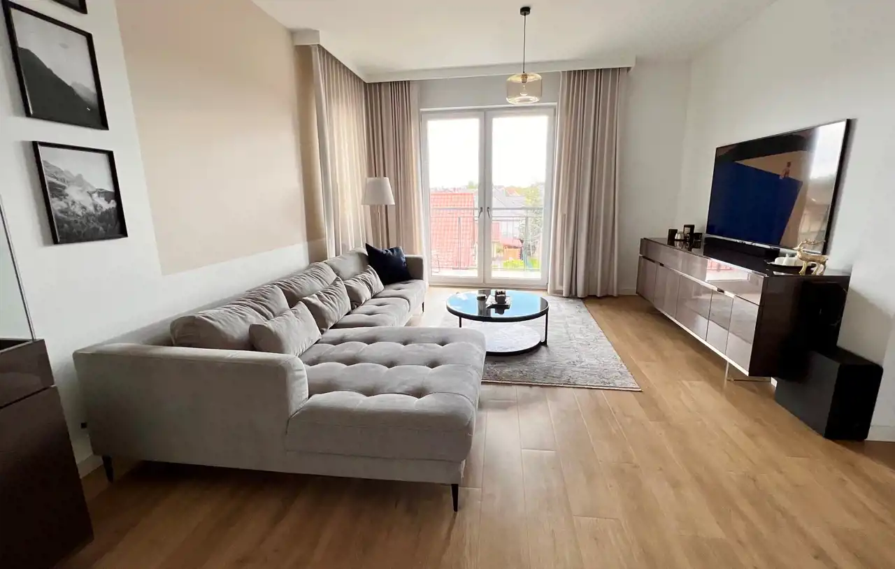 Apartament jest w pełni wyposażony i umeblowany. Wysoki standard. Wnętrze mieszkania jest idealnie dopracowane pod względem stylu, jakości i funkcjonalności. Większość mebli została wykonana na wymiar. Dopracowane detale, takie jak: kamienne blaty w kuchni, przemyślane oświetlenie, wysokiej klasy meble (Kler) - nadają unikalny charakter wnętrzu i tworzą jego atmosferę.